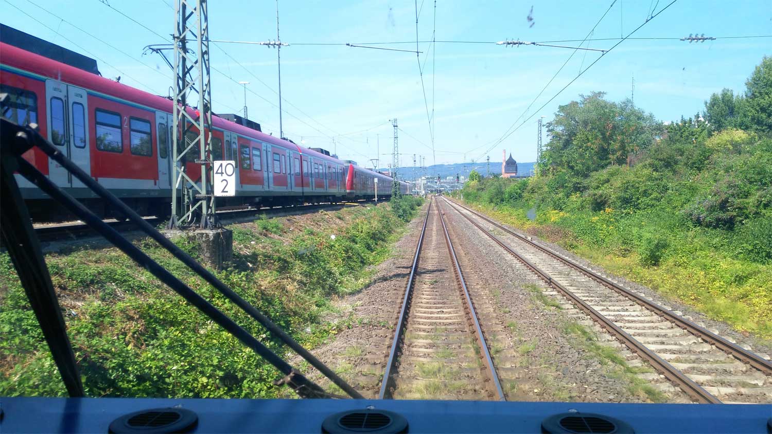 Rechts das Gegenrichtungsgleis Wiesbaden Hbf - Abzw Wiesbaden-Biebrich