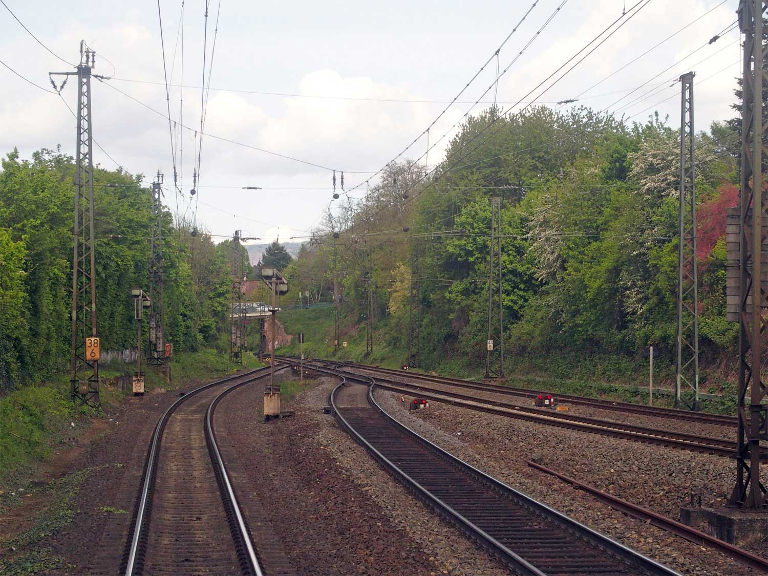 km 39,0 (rechts, Richtungsgleis der Strecke 3603) zwischen Abzw Stellwerk I (bei Wiesbaden Ost) und Wiesbaden Hbf - Blick Richtung Wiesbaden Hbf
