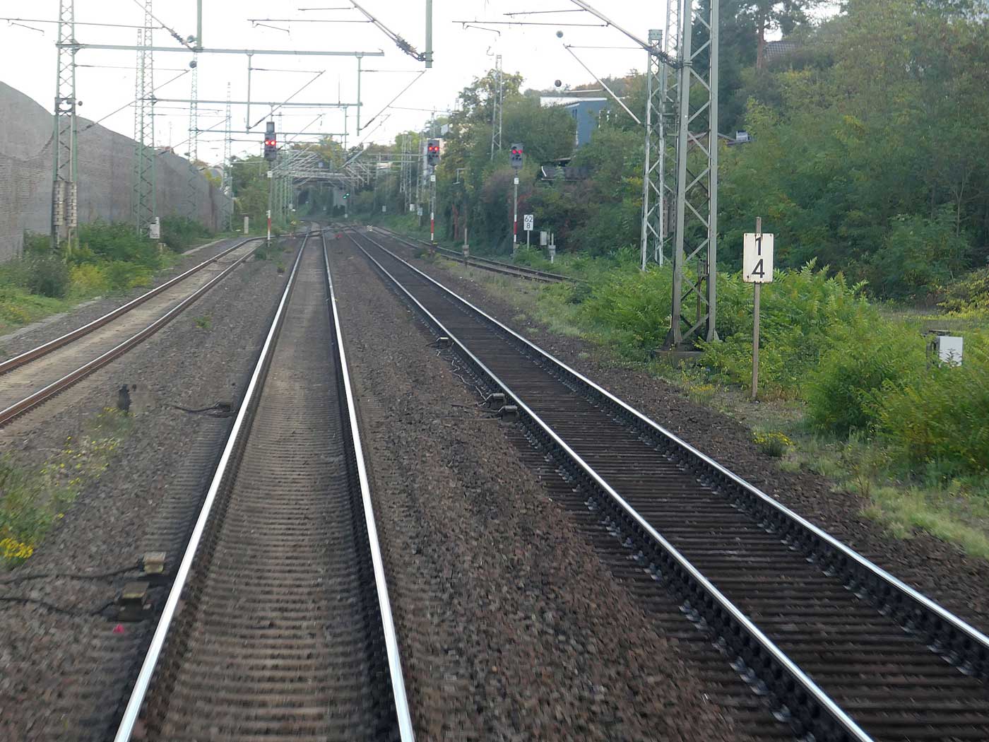 km 1,4 (links) gehört zur Strecke Mainz Hbf 0,0 - Wiesbaden Hbf 9,74 (linkes Gleis)