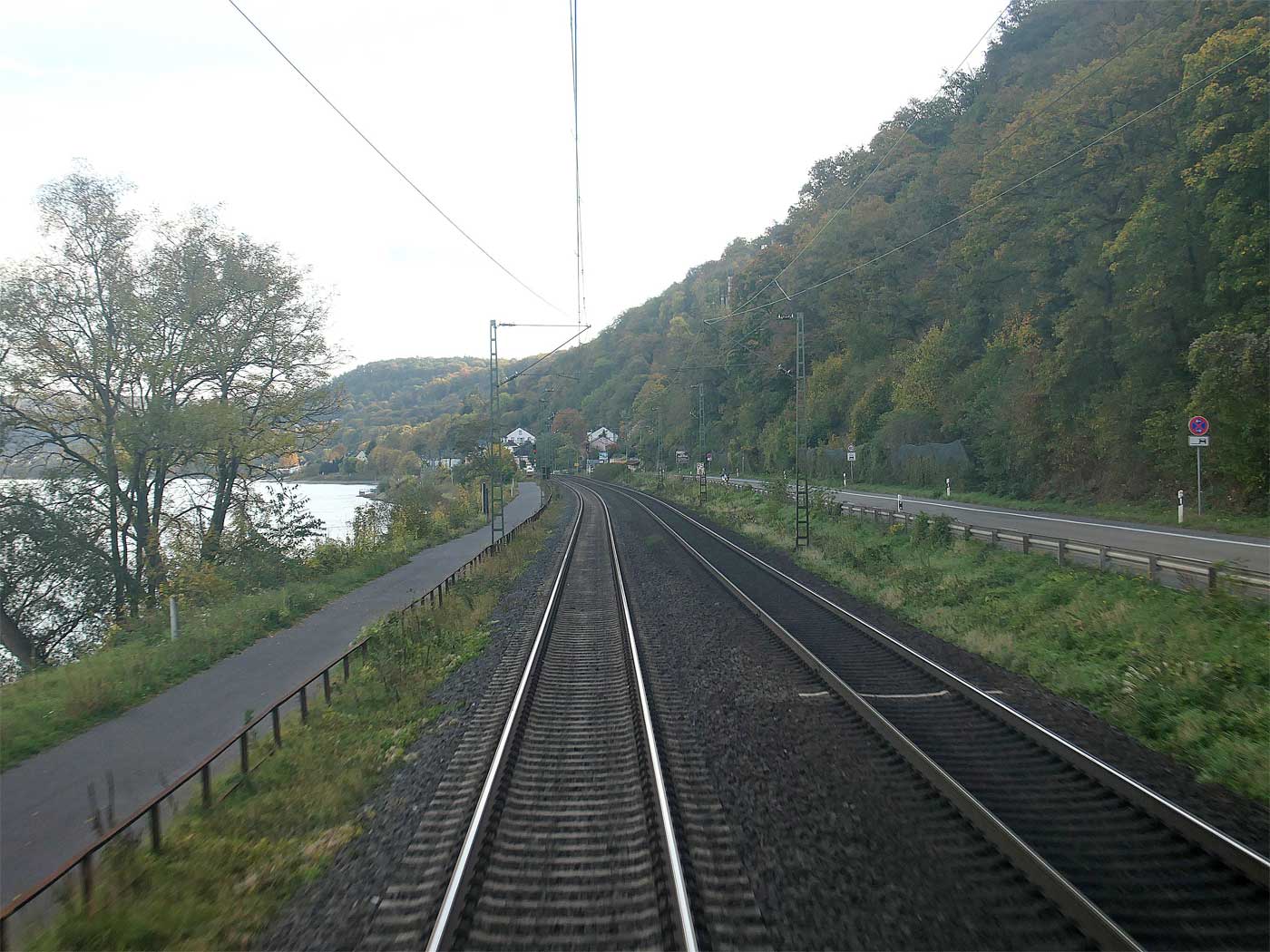 km 95,4 zwischen Königsbach (b Kapellen-Stolzenfels) und Rhens - Blick Richtung Bingerbrück/Bingen
