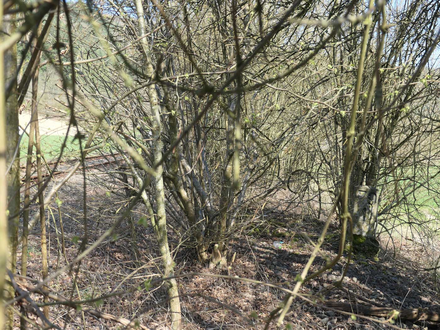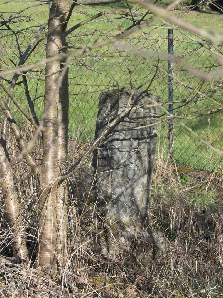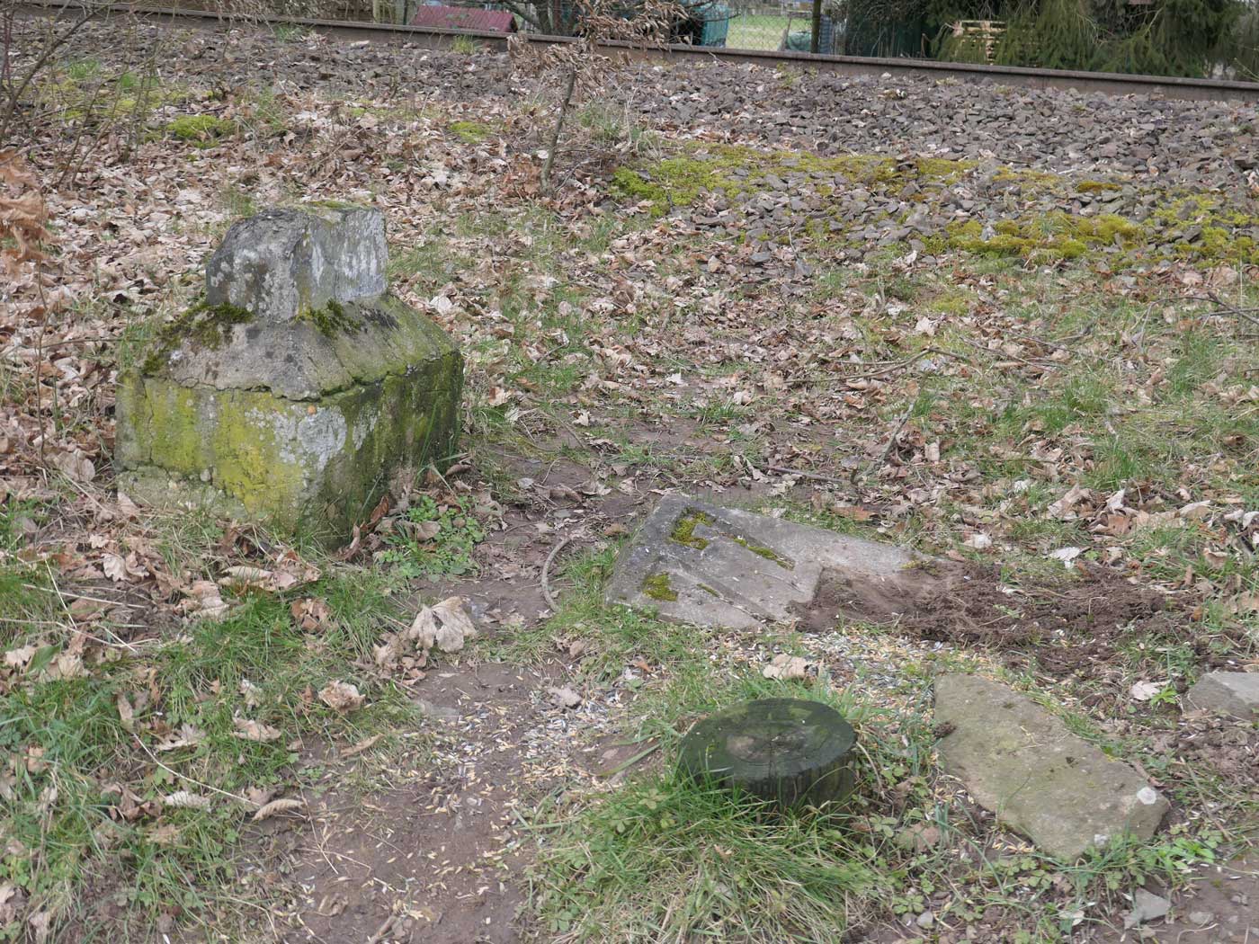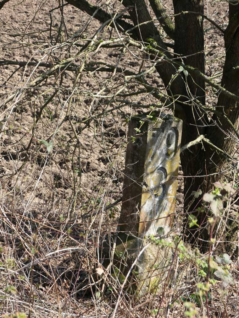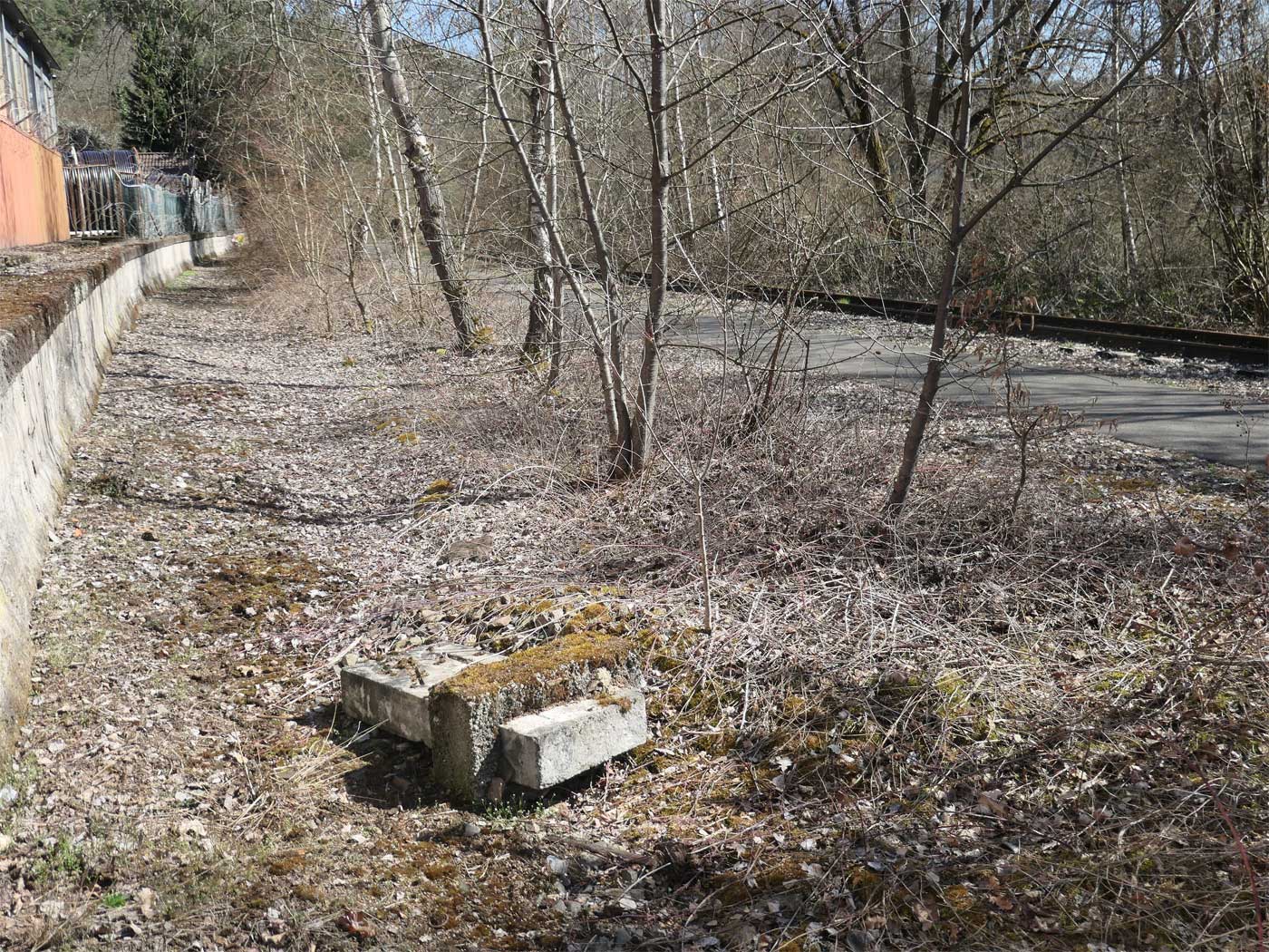 Rechts zwischen Gsp und Lampenmast am Zaun befindet sich km 34,4 der Strecke
