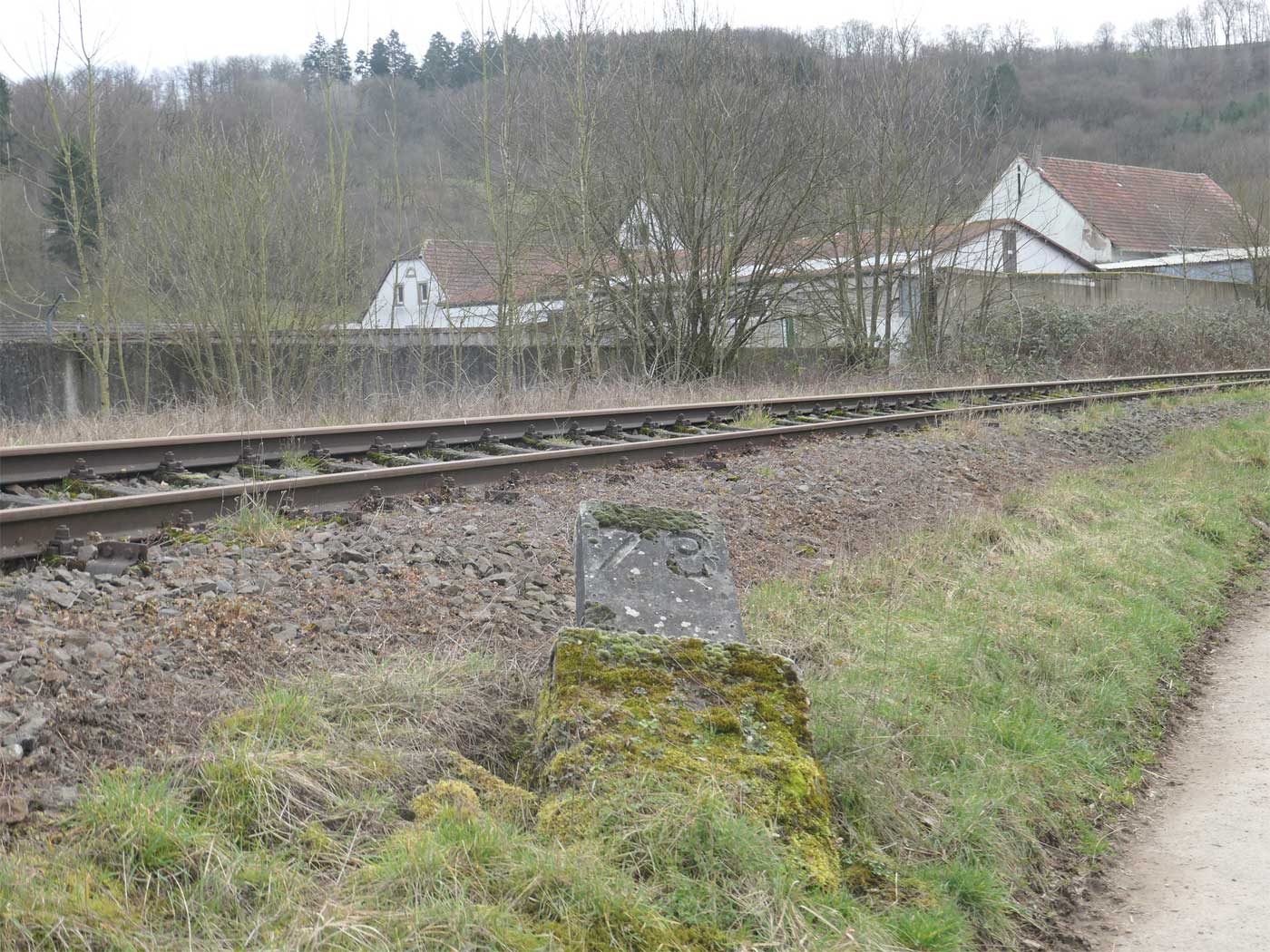 km 0,0 der Strecke Homburg (Saar) Hbf 0,0 - Einöd (Saar) 7,64/Bierbach 6,87/9,11 - Reinheim (Saar) 24,27 - Grenze Deutschland/Frankreich 25,087 - [Sarreguemines (Saargemünd)] | ||