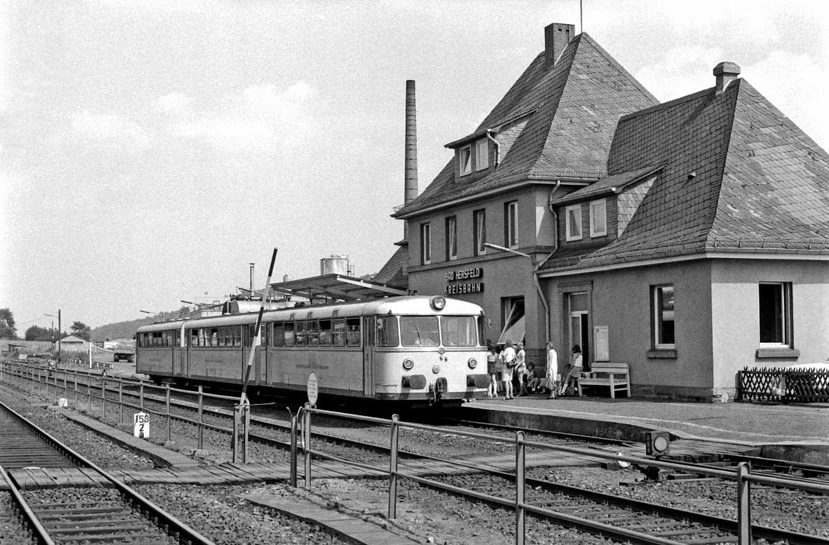 km 153,2 in Bad Hersfeld - Schienenbus und die V100 PA am 21.08.1984
