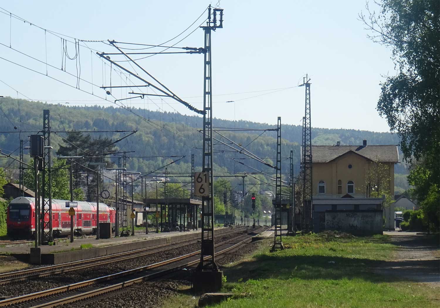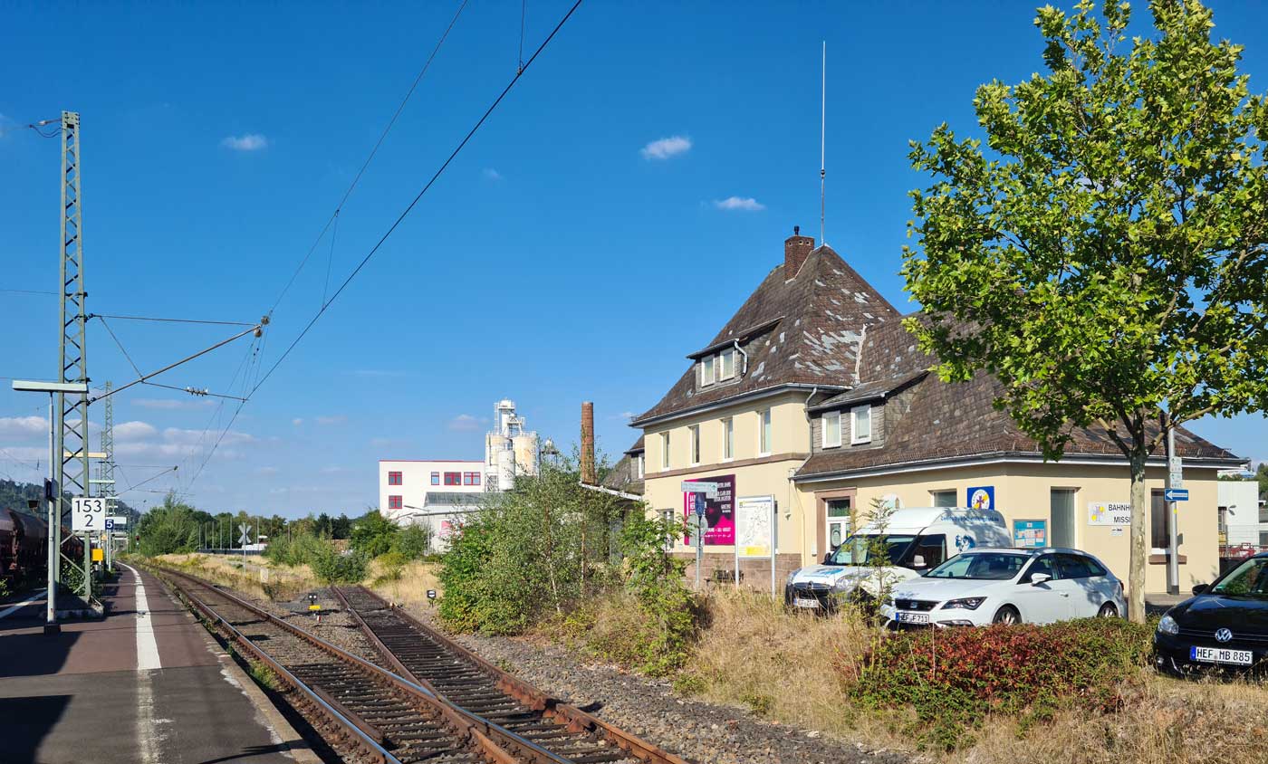 Rechts das Bahnhofsgebäude der Hersfelder Kreisbahn