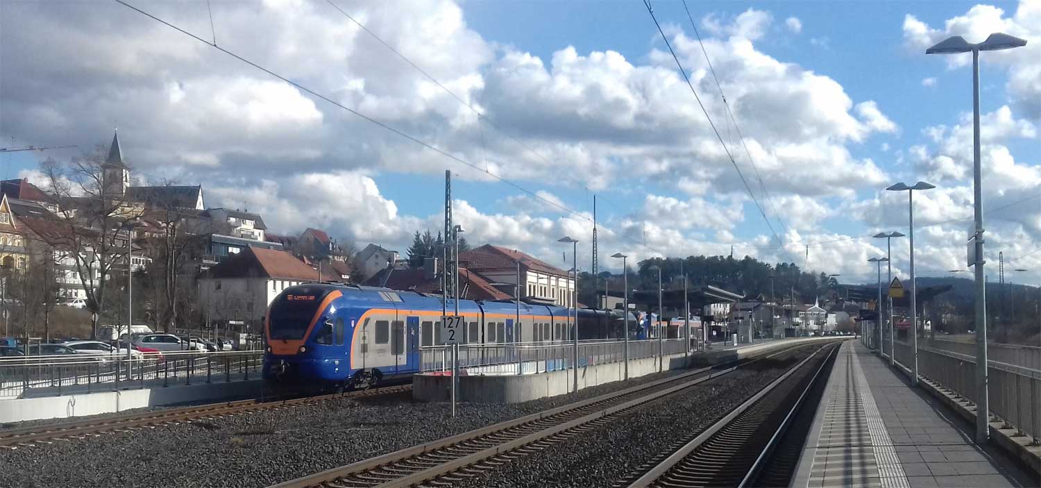 Wächtersbach | 54,79 | km 0,0 der Strecke Wächtersbach Klbf 0,0 - Bad Orb 6,5 - Verladestelle Truppenübungsplatz Wegscheide 8,2 (Bad Orber Kleinbahn; Normalspur bis 1995, Schmalspur 600 mm ab 2001) |