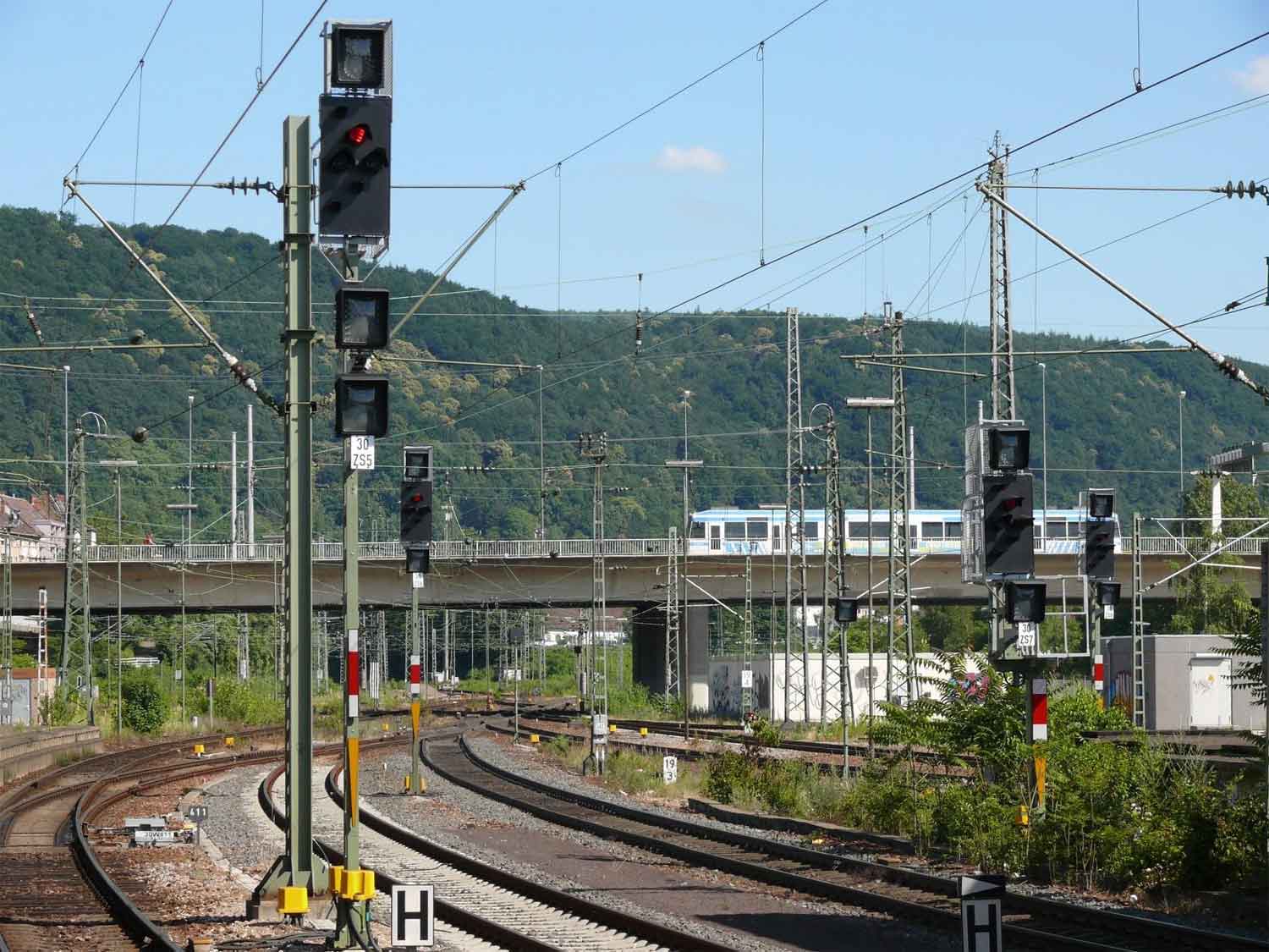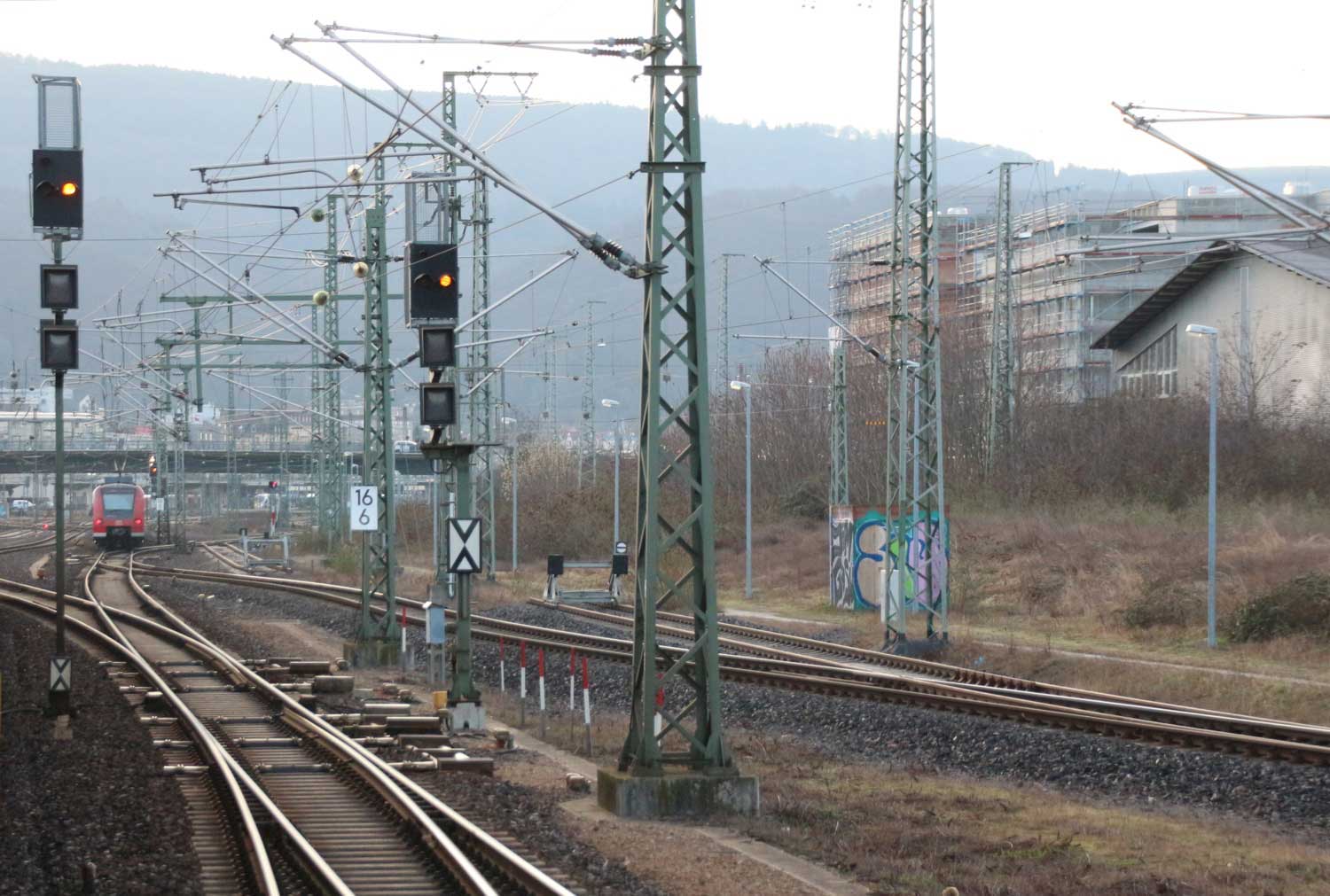 km 87,9 der Strecke [Frankfurt (Main) Hbf 0,0 - Darmstadt Hbf 27,73 (Gegengleis 27,76) - Mannheim-Friedrichsfeld 77,06] - Abzw. Heidelberg-Wieblingen 83,59 - Heidelberg Hbf 87,9
