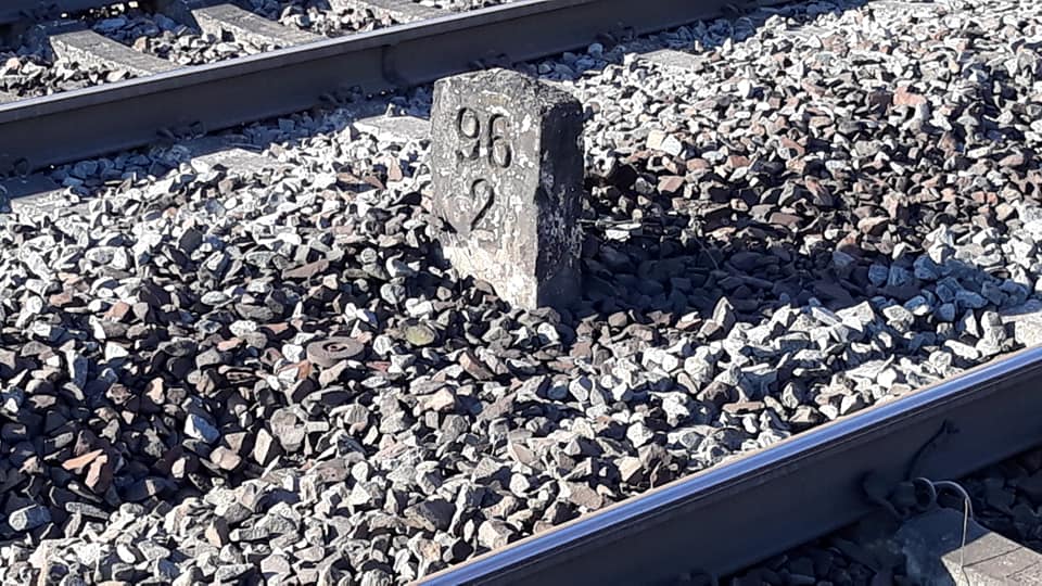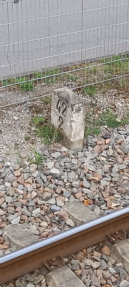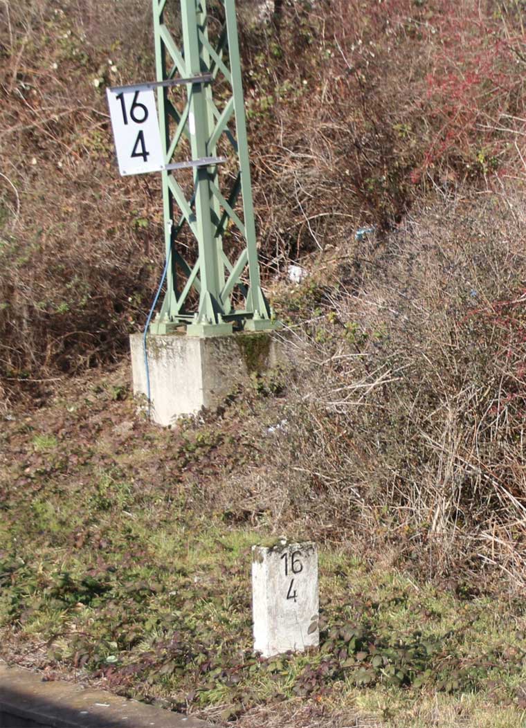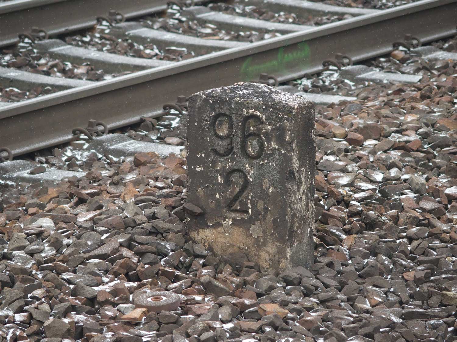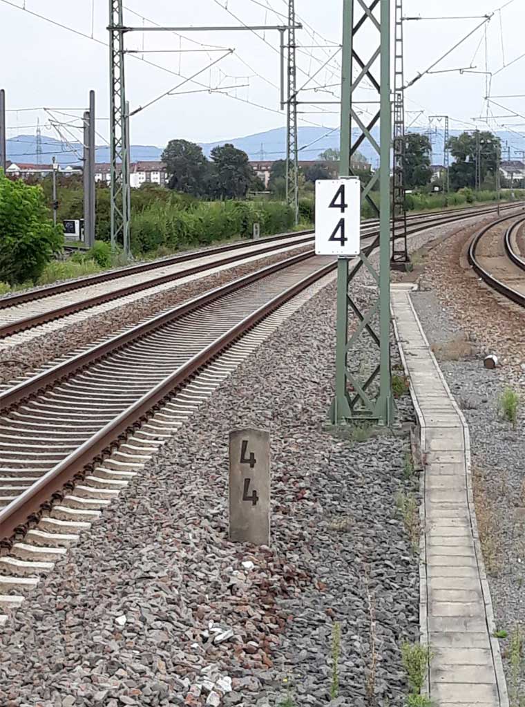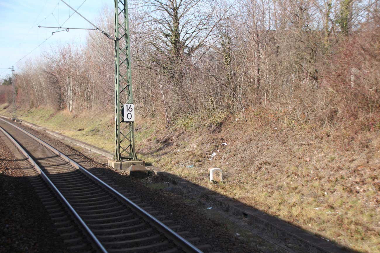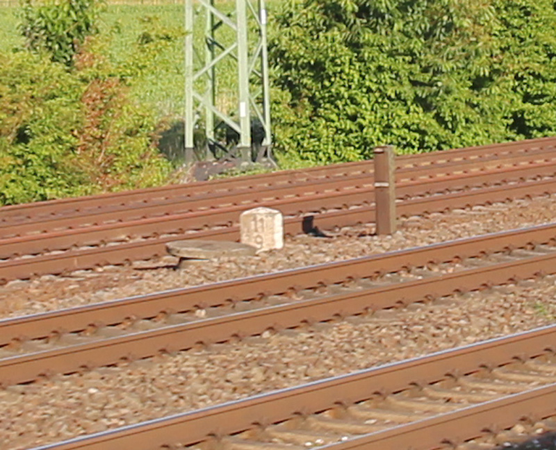 km 96,6 (Stein links) und km 96,7 (Stein Mitte) in Rastatt - Blick Richtung Basel Bad Bahnhof - Konstanz