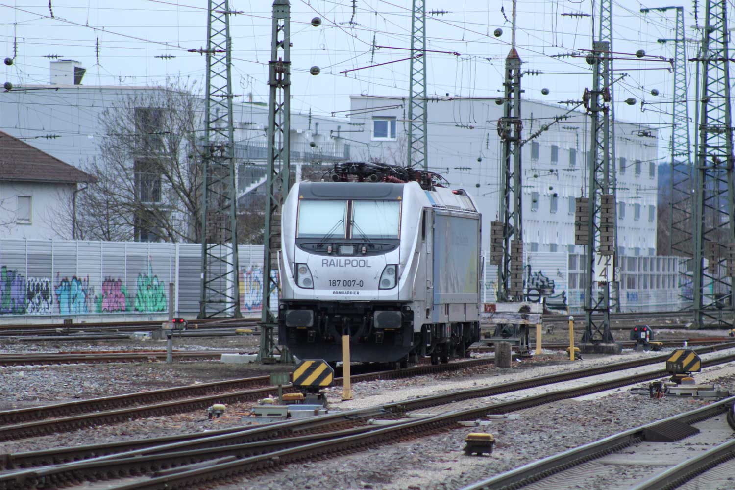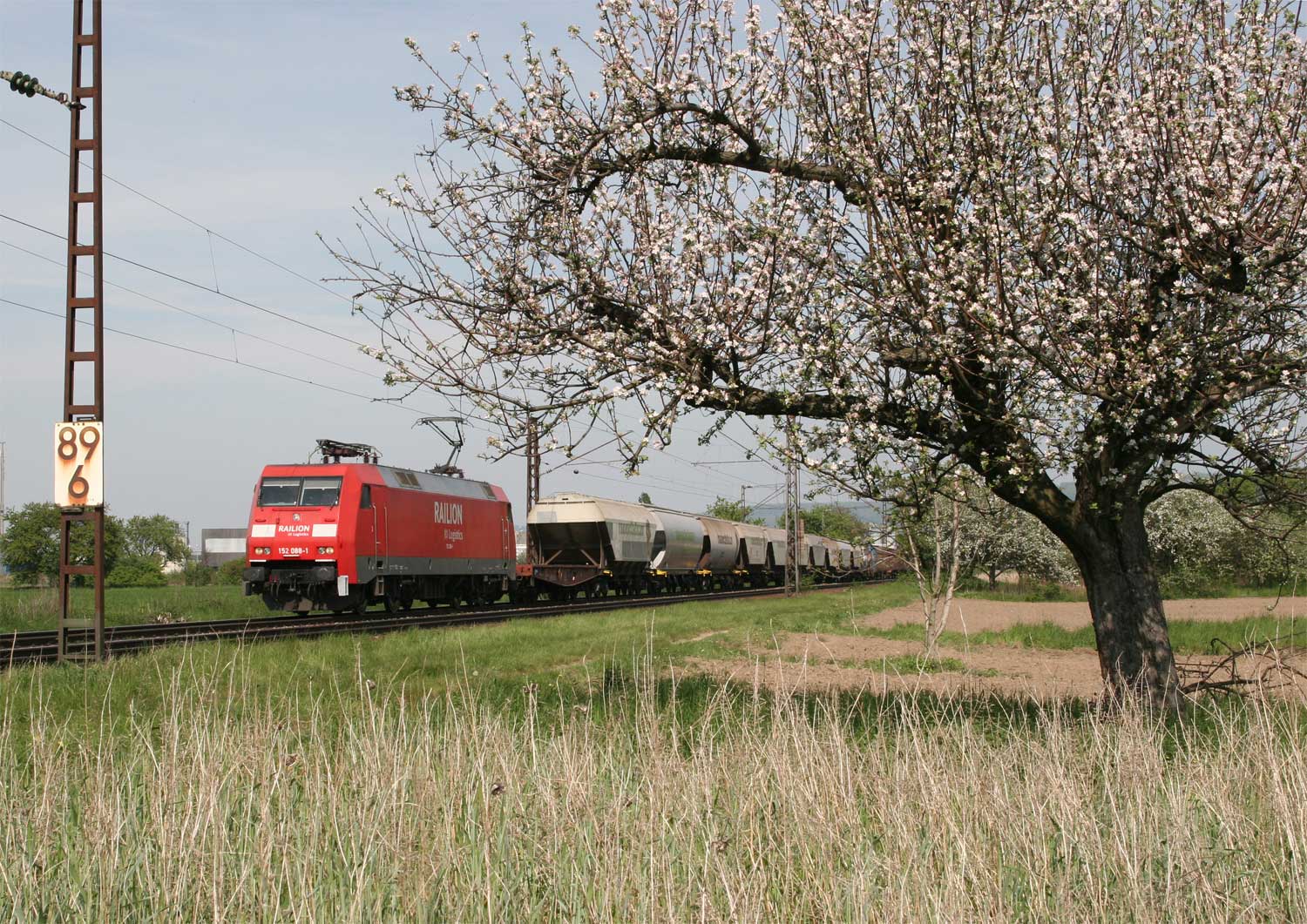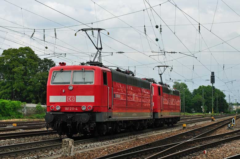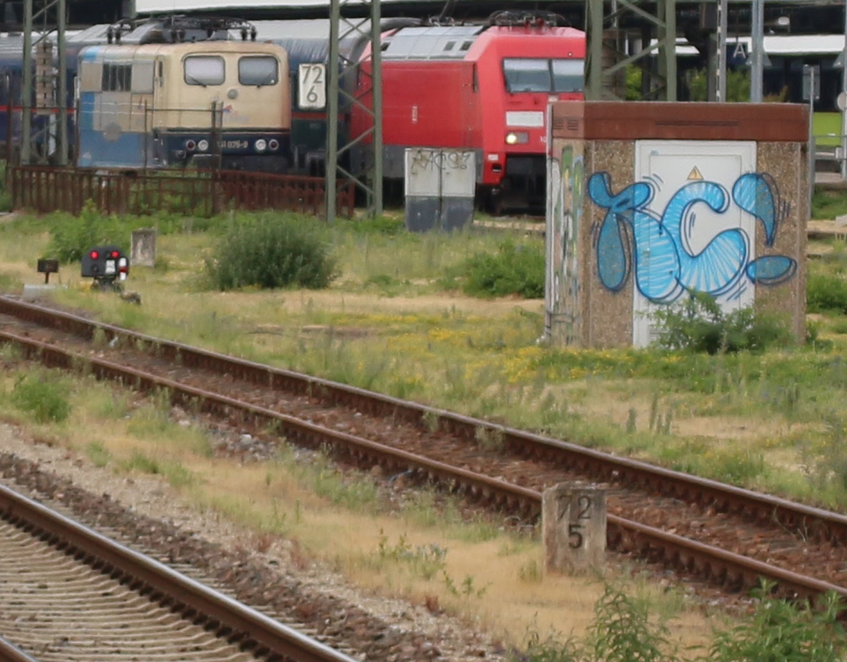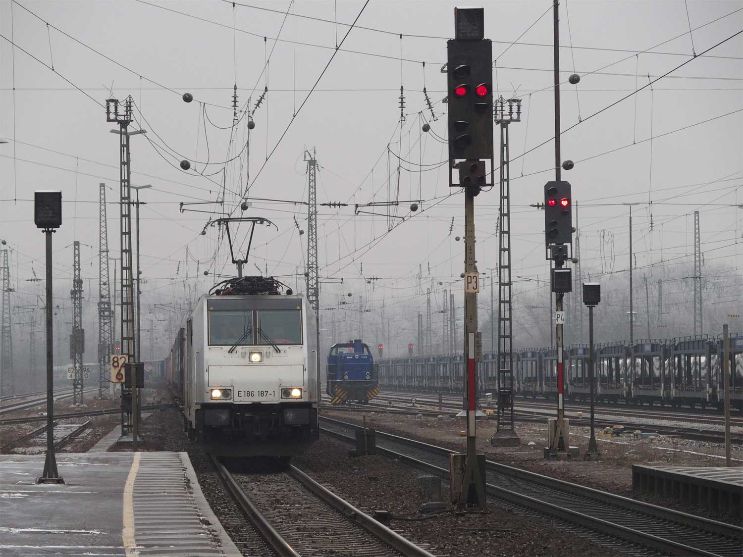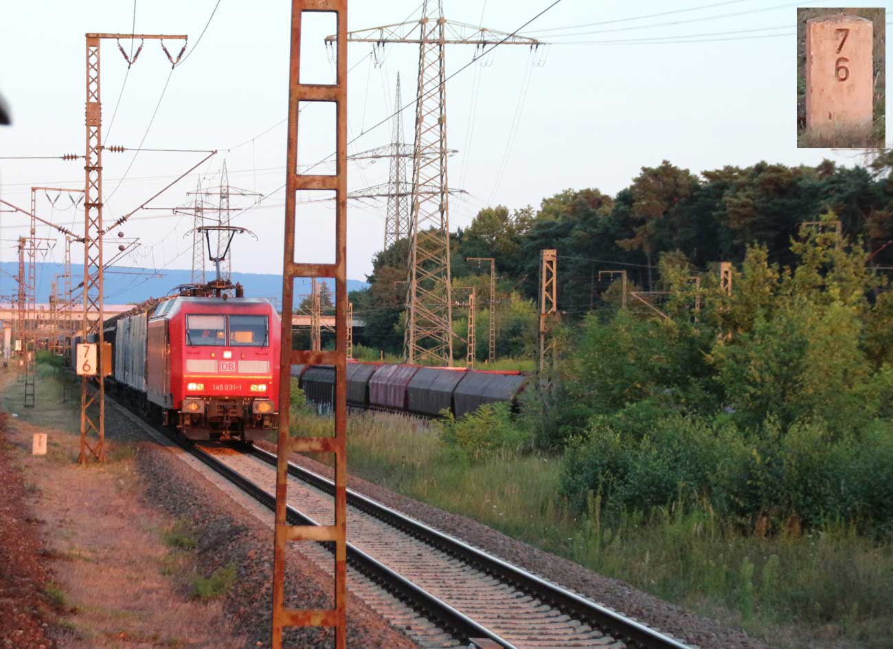 km 96,0 (Tafel) und km 96,2 (Stein) in Rastatt - Railpool E 186 187