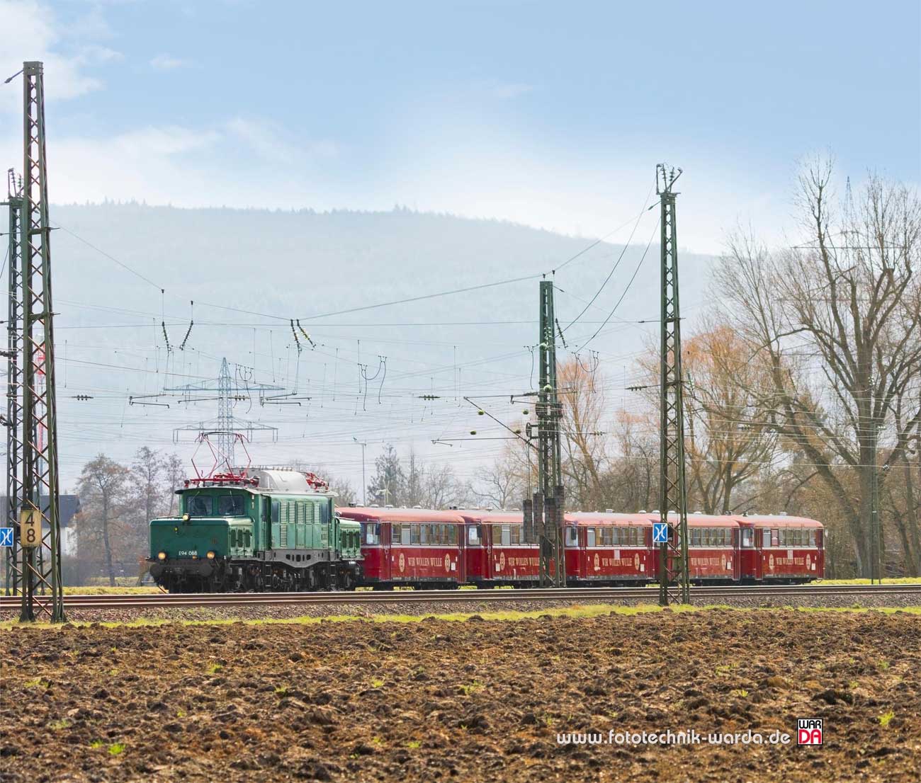 E94 088 mit der Schienenbusgarnitur "Roter Flitzer" als Überführungsfahrt von Triberg nach Kornwestheim