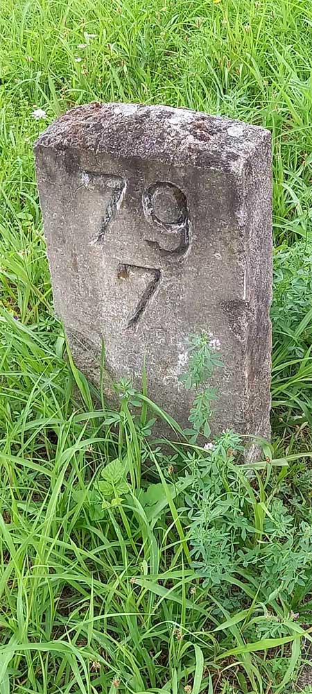 Reichsgrenze   Hier erfolgt die Angabe der später gültigen Kilometrierung: 268,745