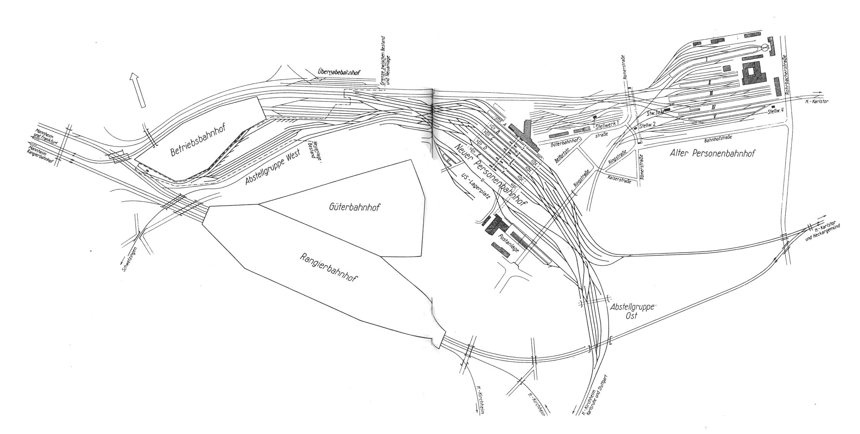 Lageplan Heidelberg Hbf während des Umbaues 1955