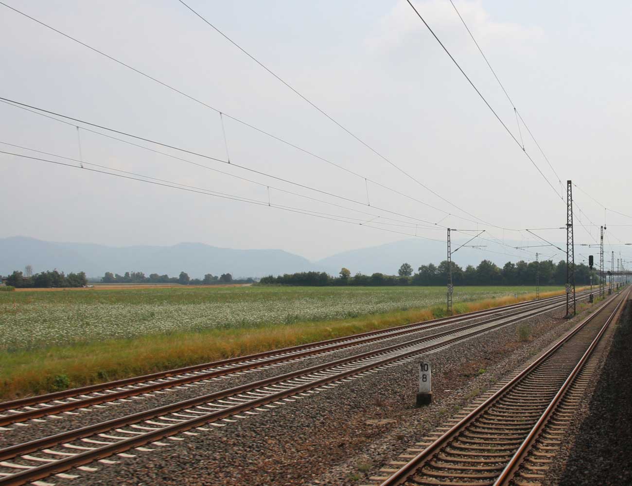 bei km 98,7 zwischen Rastatt und Baden-Baden - Blick Richtung Mannheim