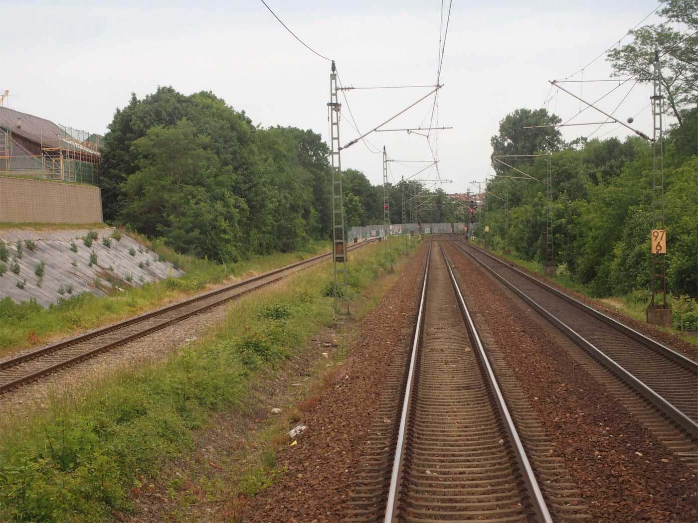 Karlsruhe Gbf 0,0 - Abzw Brunnenstück, W 501, km 5,029 (4213) - Gegenrichtungsgleis