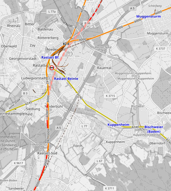 Rastatt, W 60, km 83,470 - Wintersdorf (Baden) (DB-Grenze) km 92,318 (4242)
