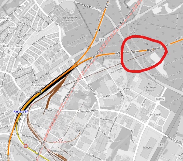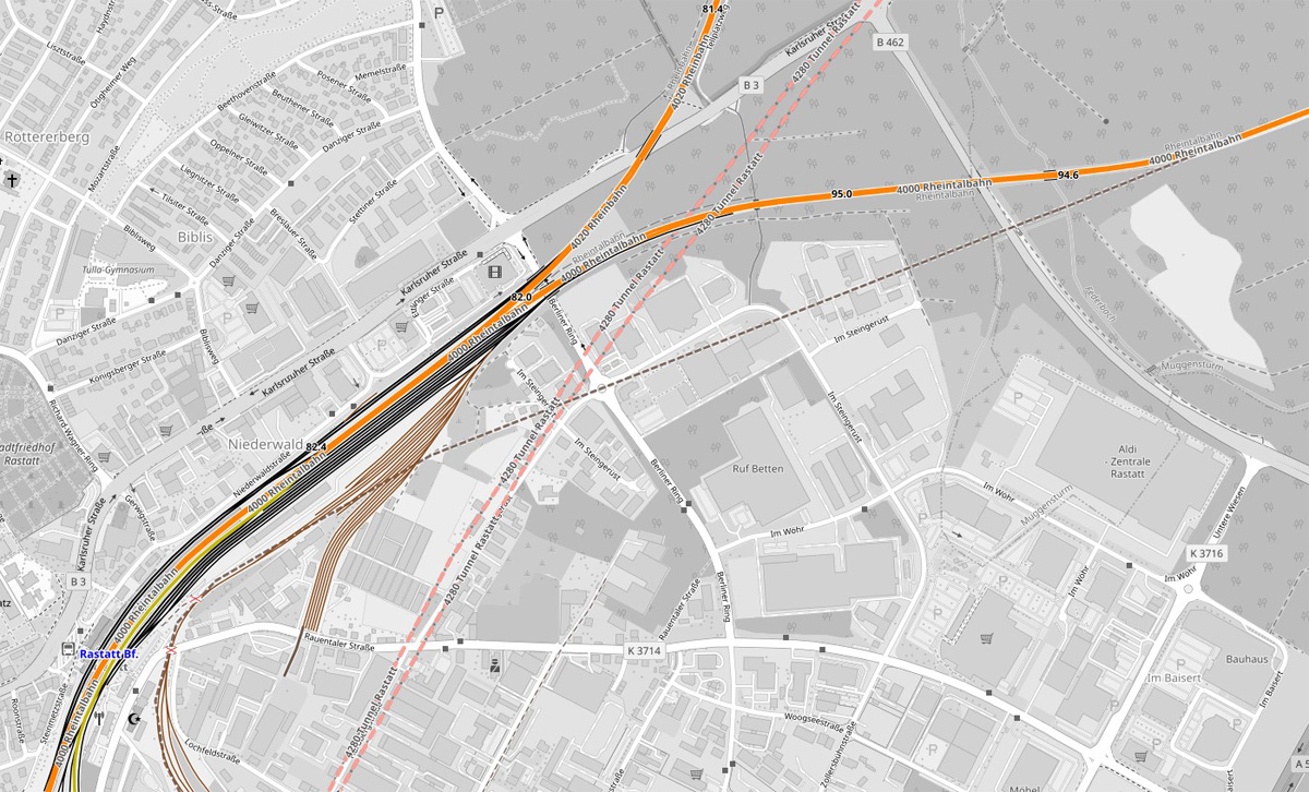 km 95,7 in Rastatt - Blick Richtung Basel Bad Bahnhof - Konstanz