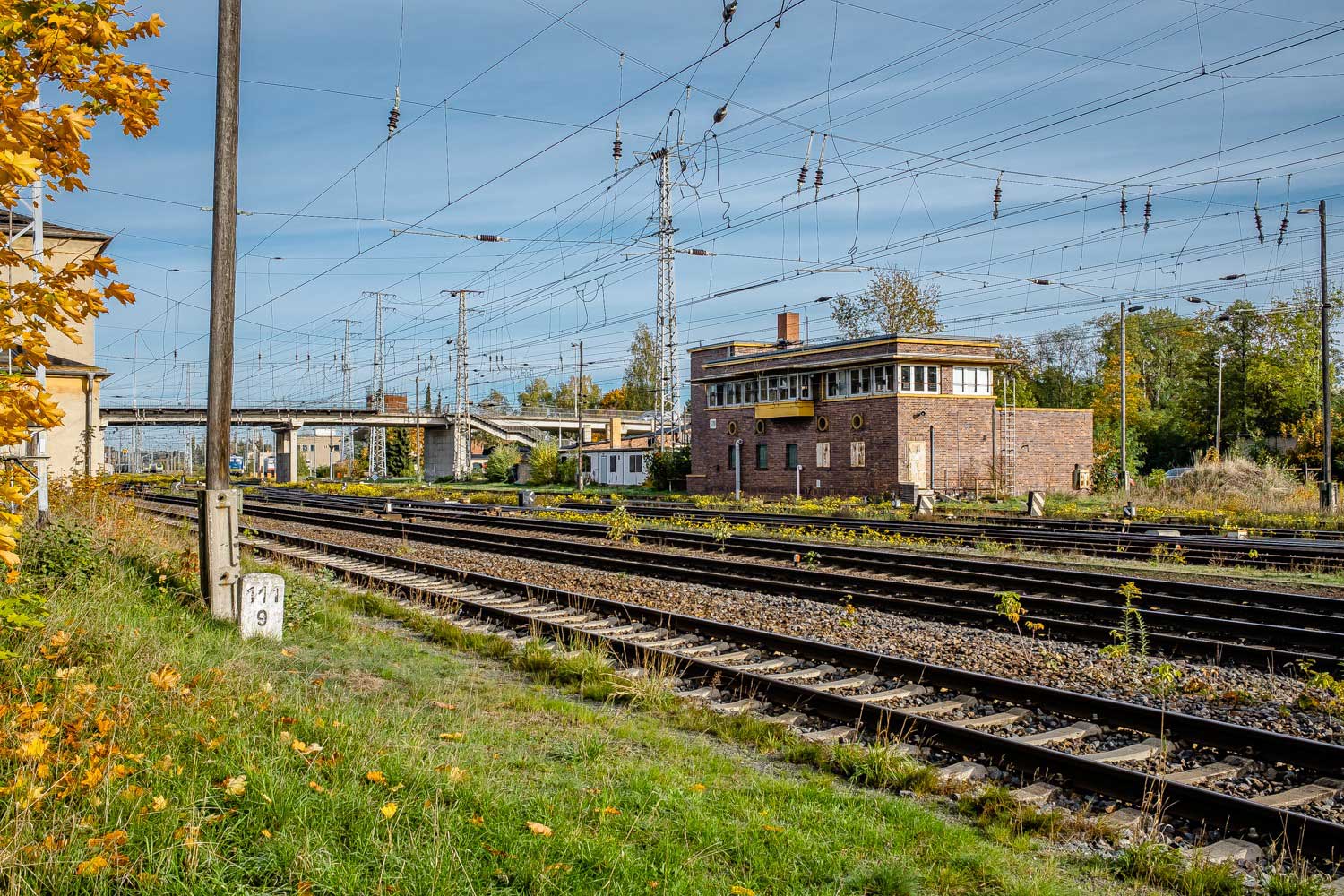 Berlin Kolonnenstraße | 2,31 | km 2,42 der Strecke Berlin Anhalter Bf (bis 1882 Berlin Dresdner Bf) 0,01 - Uckro Reichsb 75,99 - Elsterwerda 122,75 - Landesgrenze Preußen/Sachsen km 124,55 = km 50,36 - Großenhain Berliner Bf 33,52 - Dresden-Friedrichstadt 0,23 |