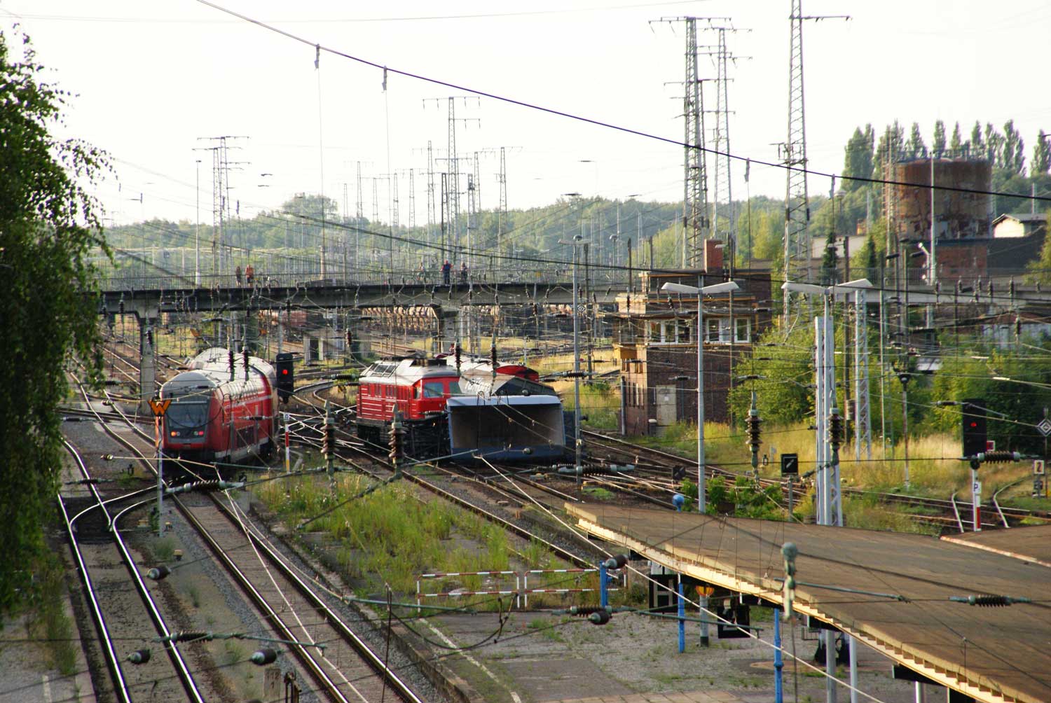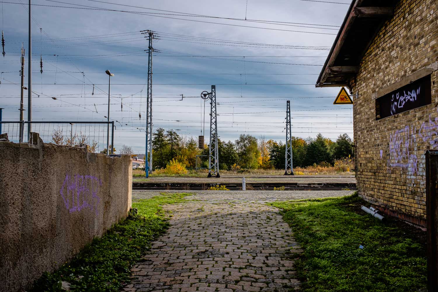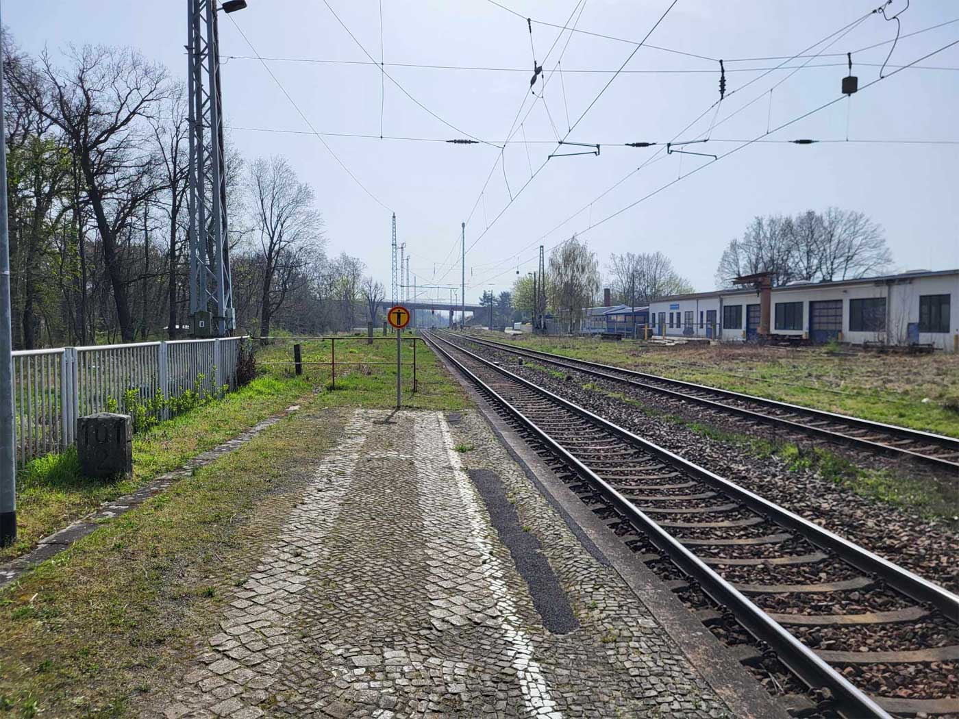 Links die Gleise der Anschlussbahn Bundeswehrdienstleistungszuentrum