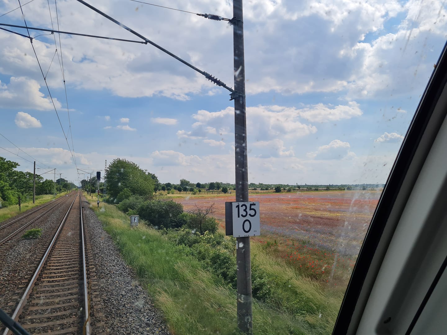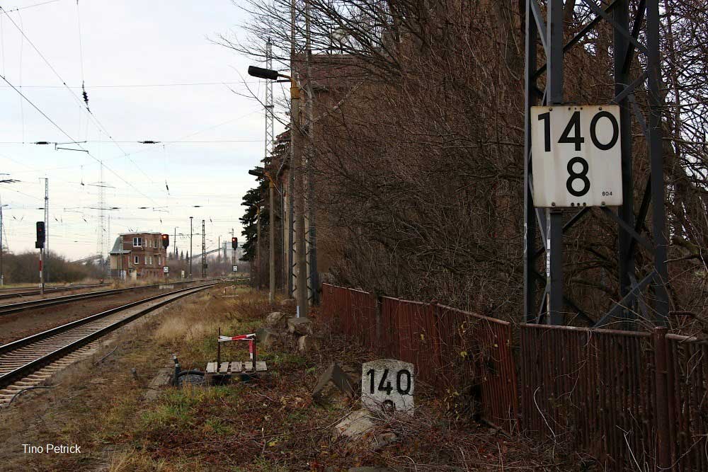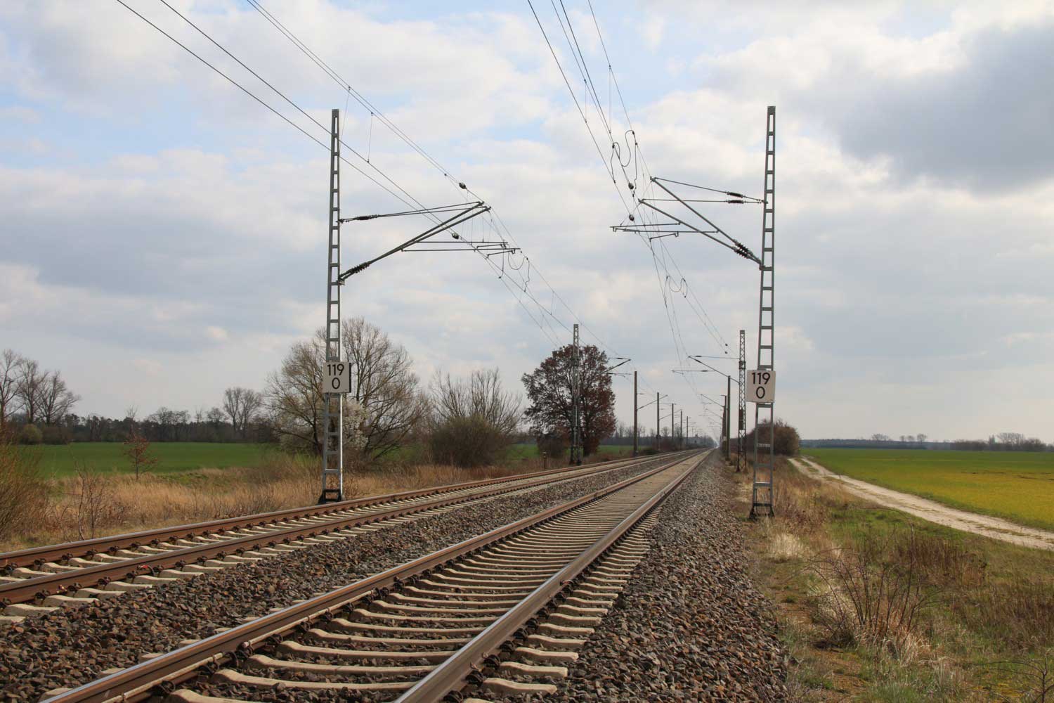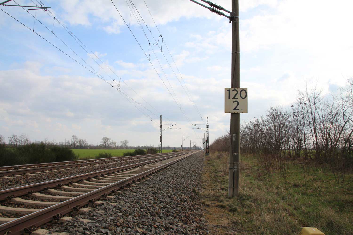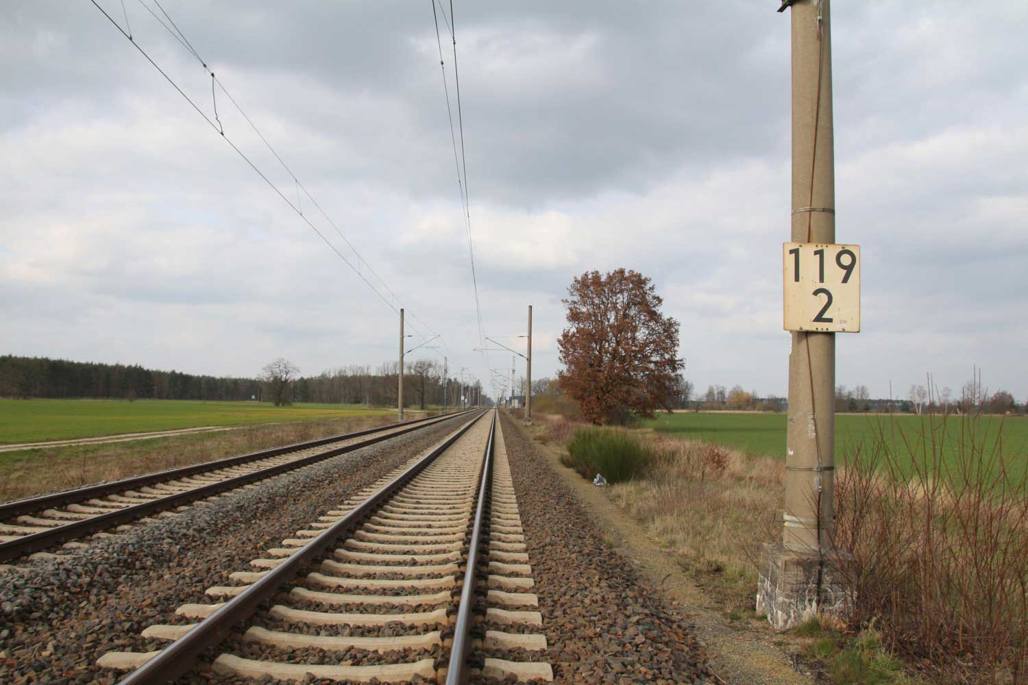 km 140,2 (Tafel) in Röderau - Blick Richtung Jüterbog - Berlin