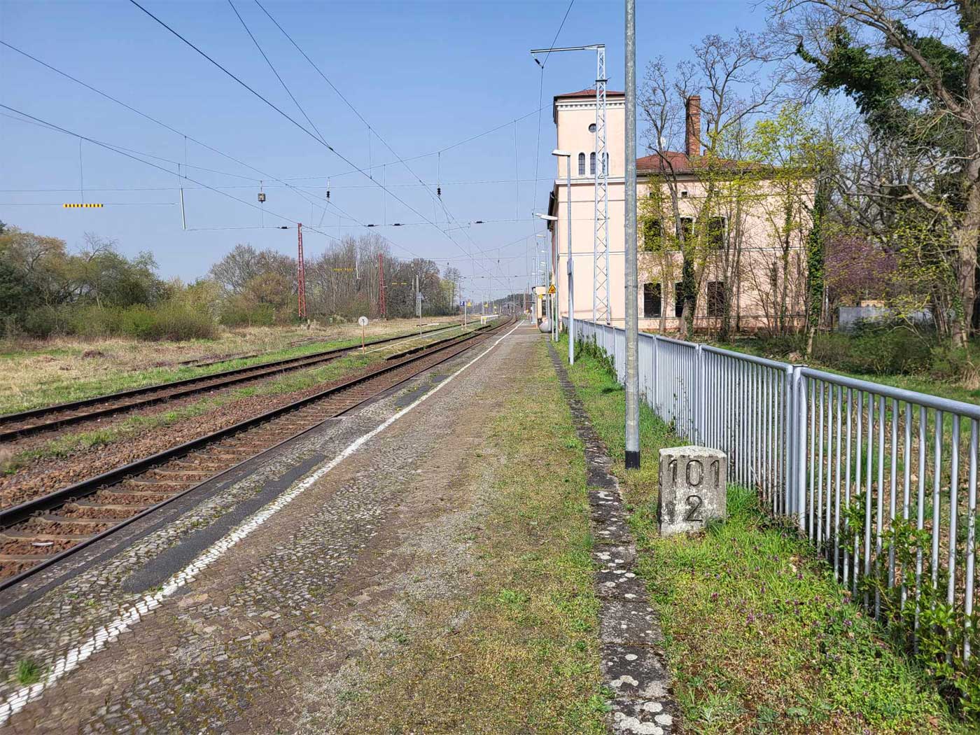Rechts die Strecke Neuburxdorf 0,0 - Mühlberg (Elbe) 7,67