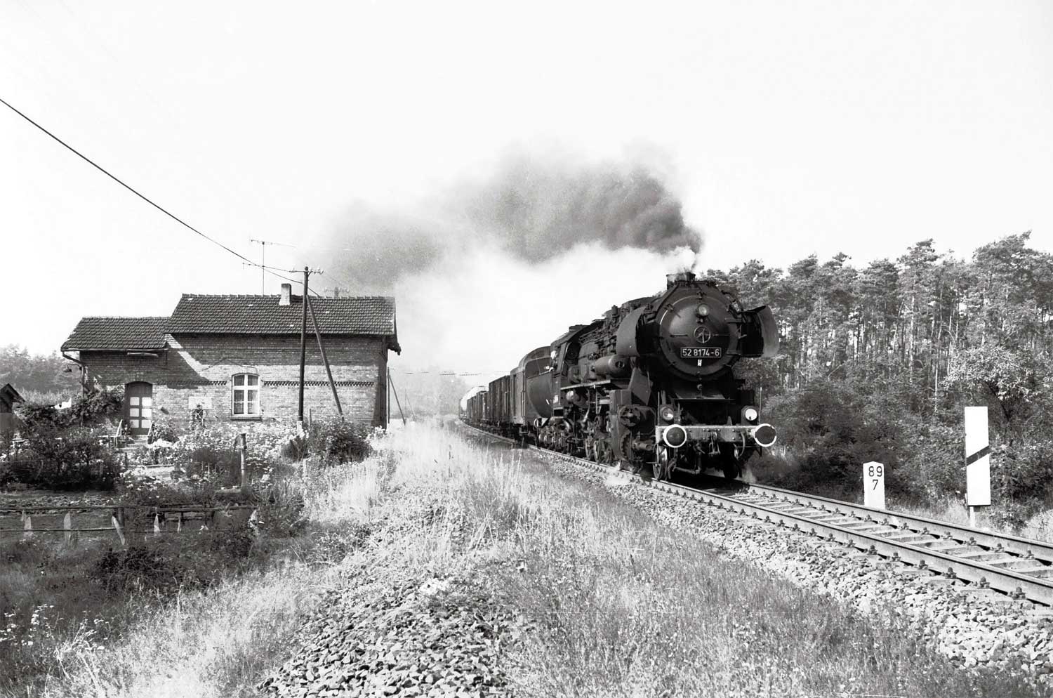 ► | km 62,82 der abgehenden StreckeBerlin Anhalter Bf -0,07 - Jüterbog 62,82 - Wittenberg (Provinz Sachsen) 94,76 - Bitterfeld 131,64 - Halle (Saale) Hbf 161,64 (1937/1943) mit weiterlaufender Kilometrierung (Streckenverzweigung mit gemeinsamen Nullpunkt Berlin Anhalter Bf) | |