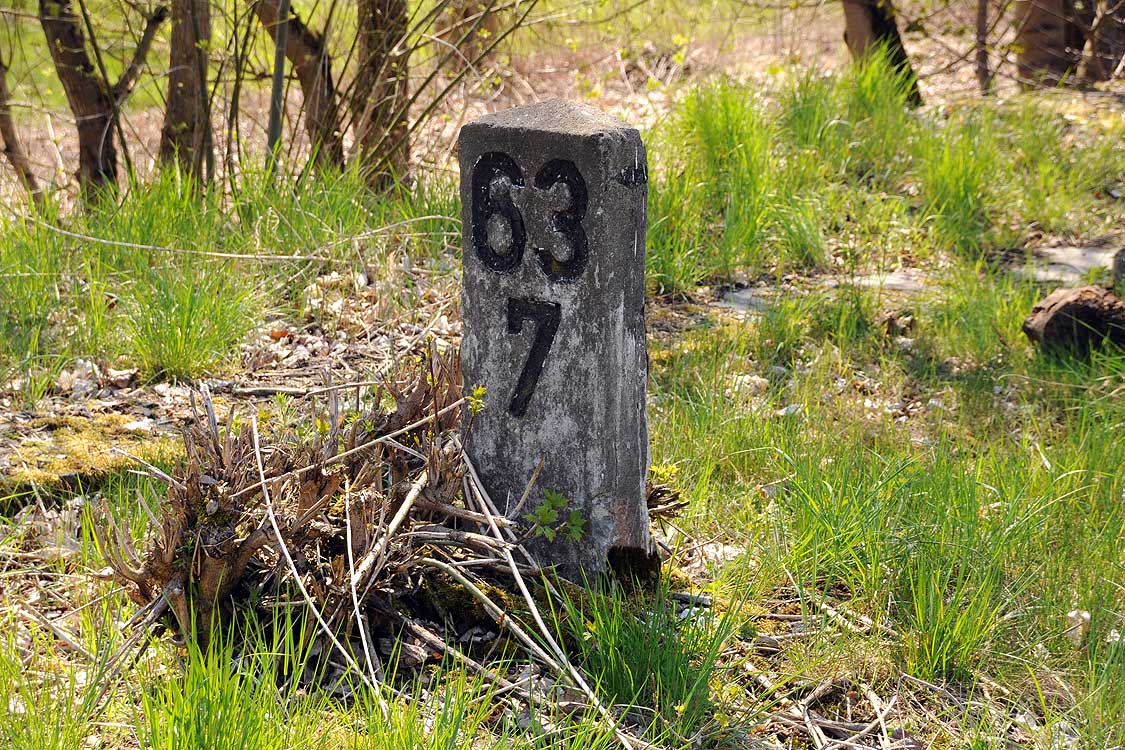 km 141,2 (Tafel und Stein) zwischen Röderau und Abzw Zeithain Bogendreieck