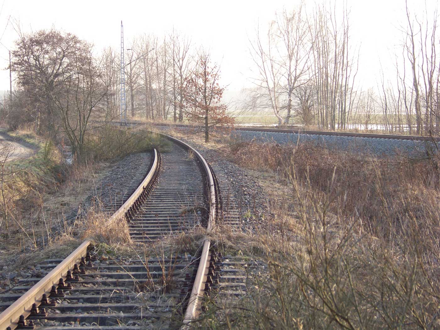 km 140,3 (Stein) in Röderau - Blick Richtung Abzw Zeithain Bogendreieck