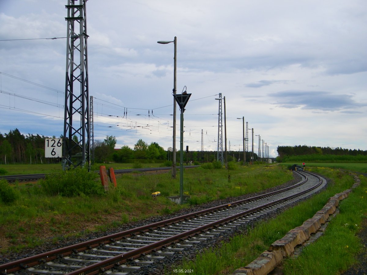 km 125,7 (Stein links) in Neuburxdorf - Blick Richtung Abzw Zeithain Bogendreieck