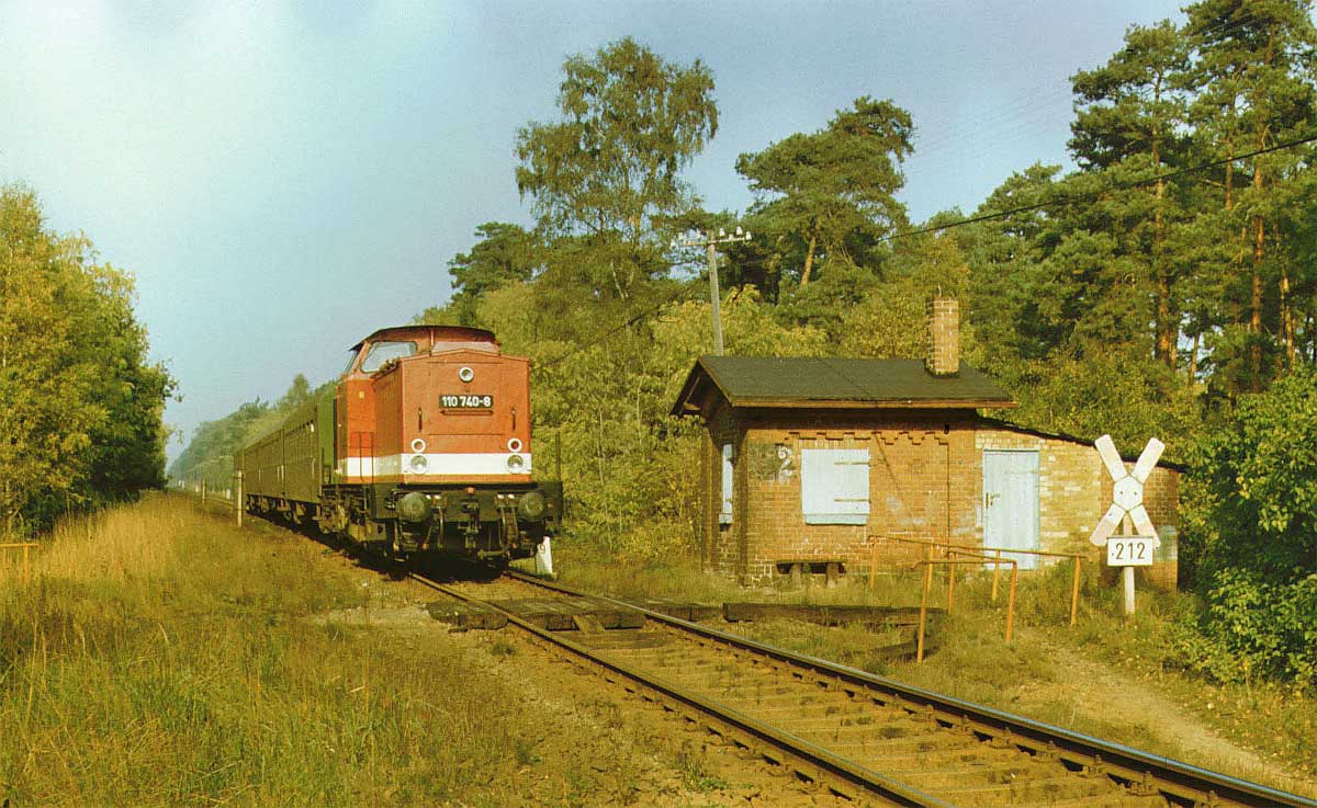 km 38,2 der Strecke [Dahme (Mark) Klbf 0,0] - Hohenseefeld 10,87 - Jüterbog 38,2 (Jüterbog-Luckenwalder Kreiskleinbahnen) Spurweite 750 mm | ||