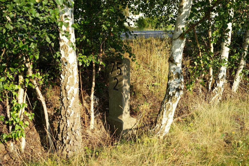 km 140,8 (Stein und Tafel) in Röderau - Blick Richtung Jüterbog - Berlin