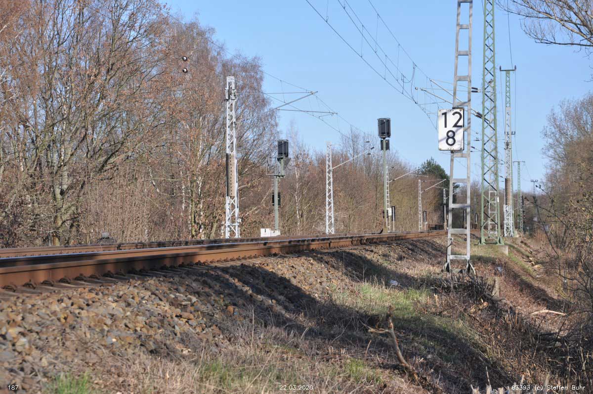 km 12,1 (Gegenrichtungsgleis) am Grünauer Kreuz (Gleis im Vordergrund nicht sichtbar)