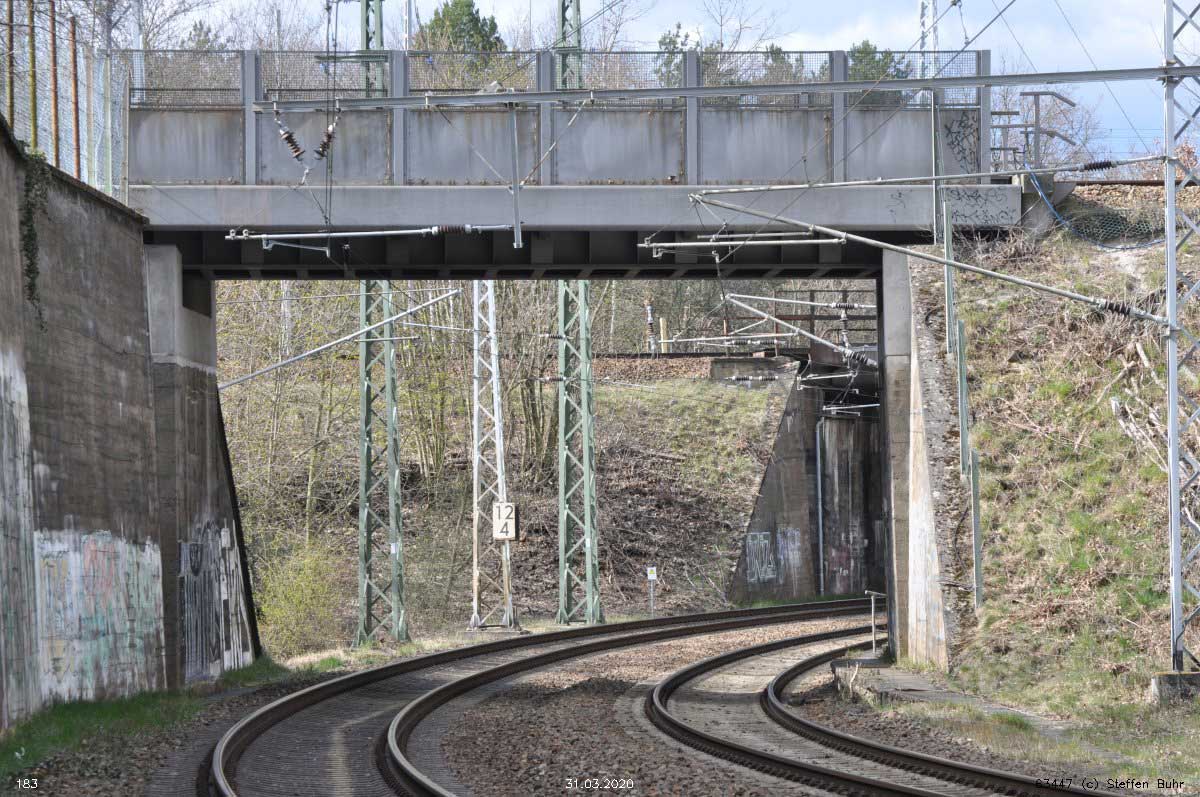 Über die Brücke führen die Gleise des Berliner Außenringes (BAR)