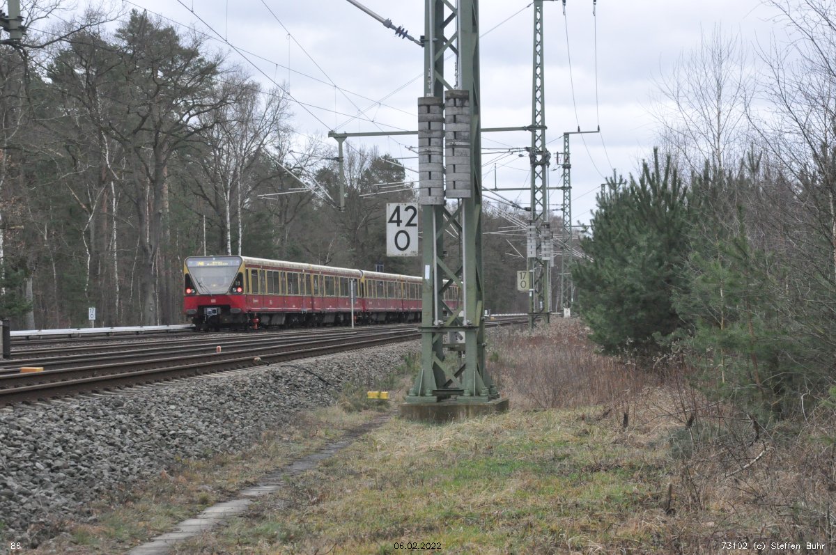 Zug selber auf Richtungsgleis der S-Bahn-Strecke Berlin Ostkreuz -0,15 - Königs Wusterhausen 27,67 (6007)