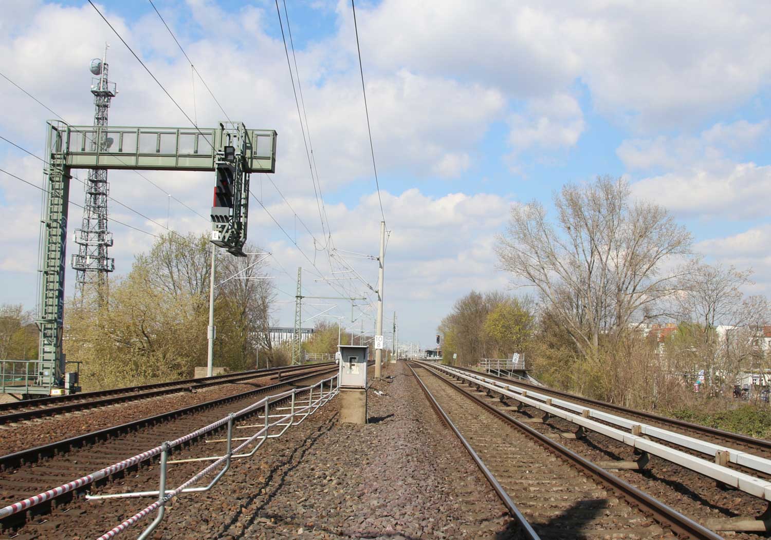 km 12,6 (Gegenrichtungsgleis) am Grünauer Kreuz - Blick Richtung Berlin