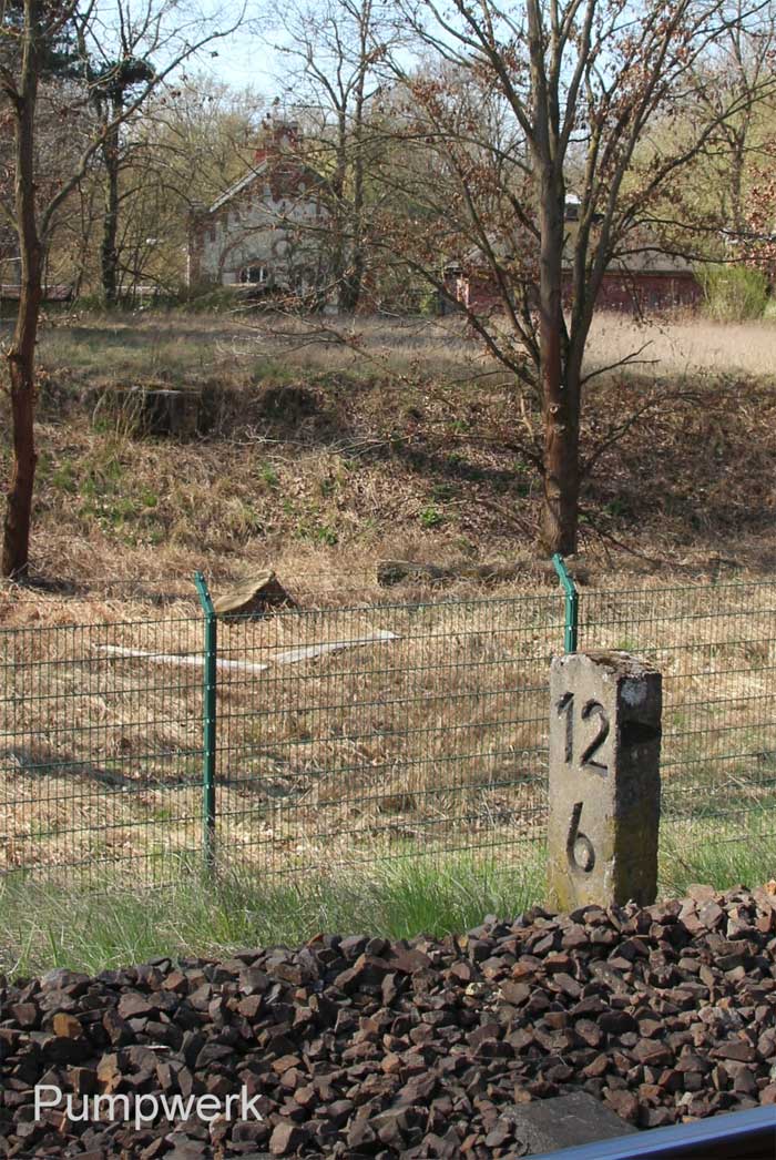 km 12,6 (Stein und Tafel; Richtungsgleis) im Bereich Grünauer Kreuz - Blick Richtung Görlitz