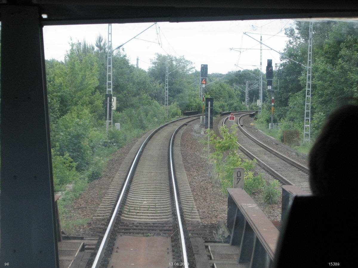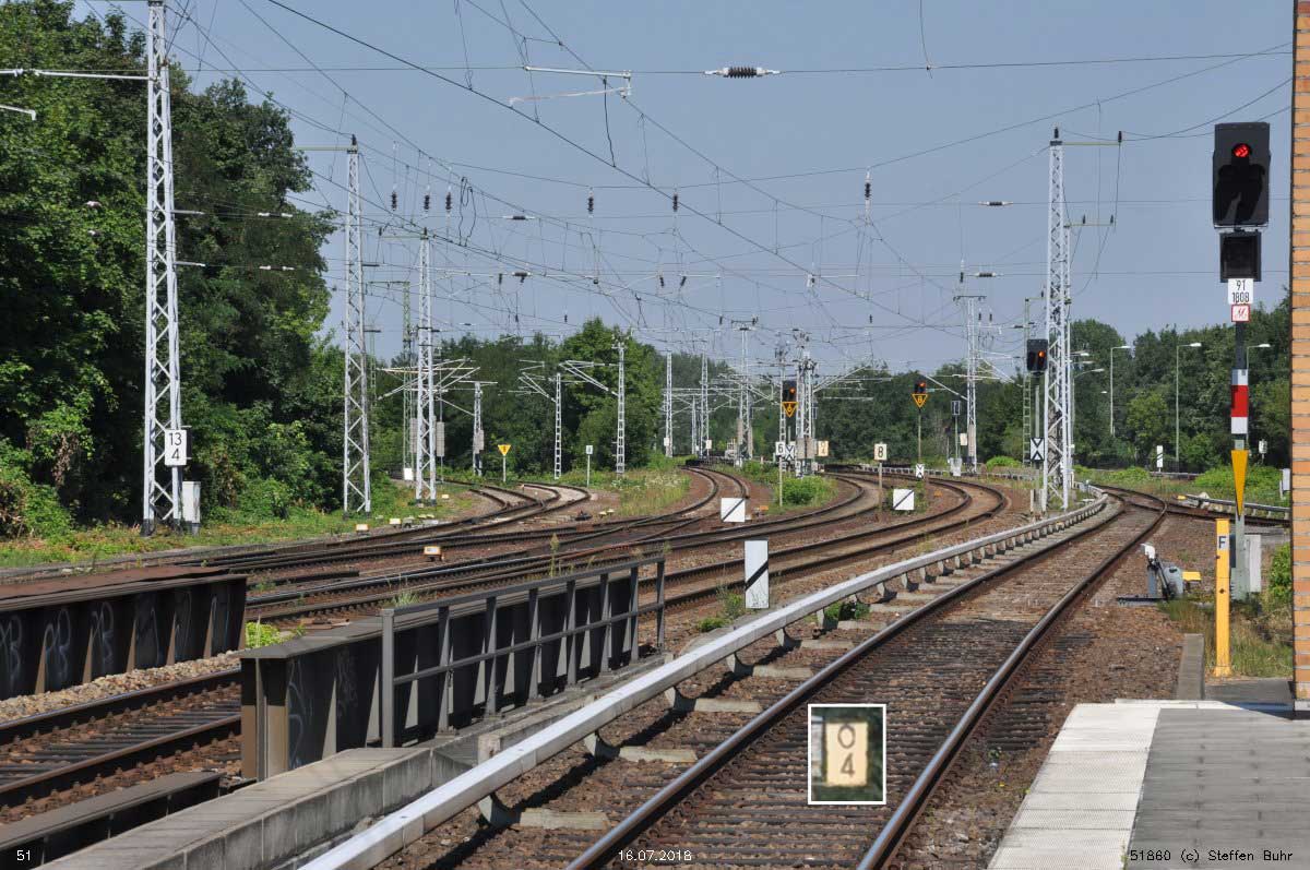 km 12,8 (Richtungsgleis) und km 13,0 (Richtungsgleis) im Bereich Grünauer Kreuz - Blick Richtung Görlitz