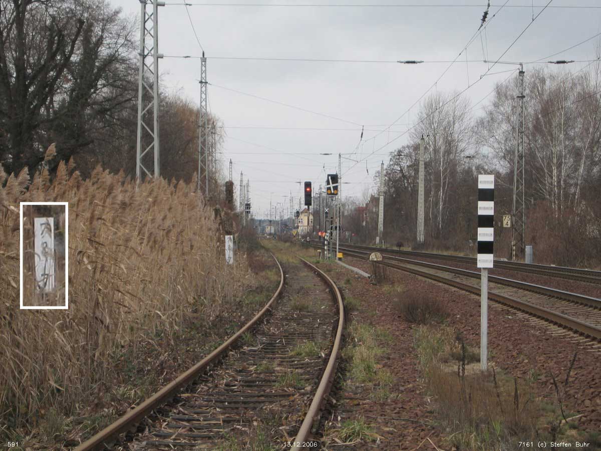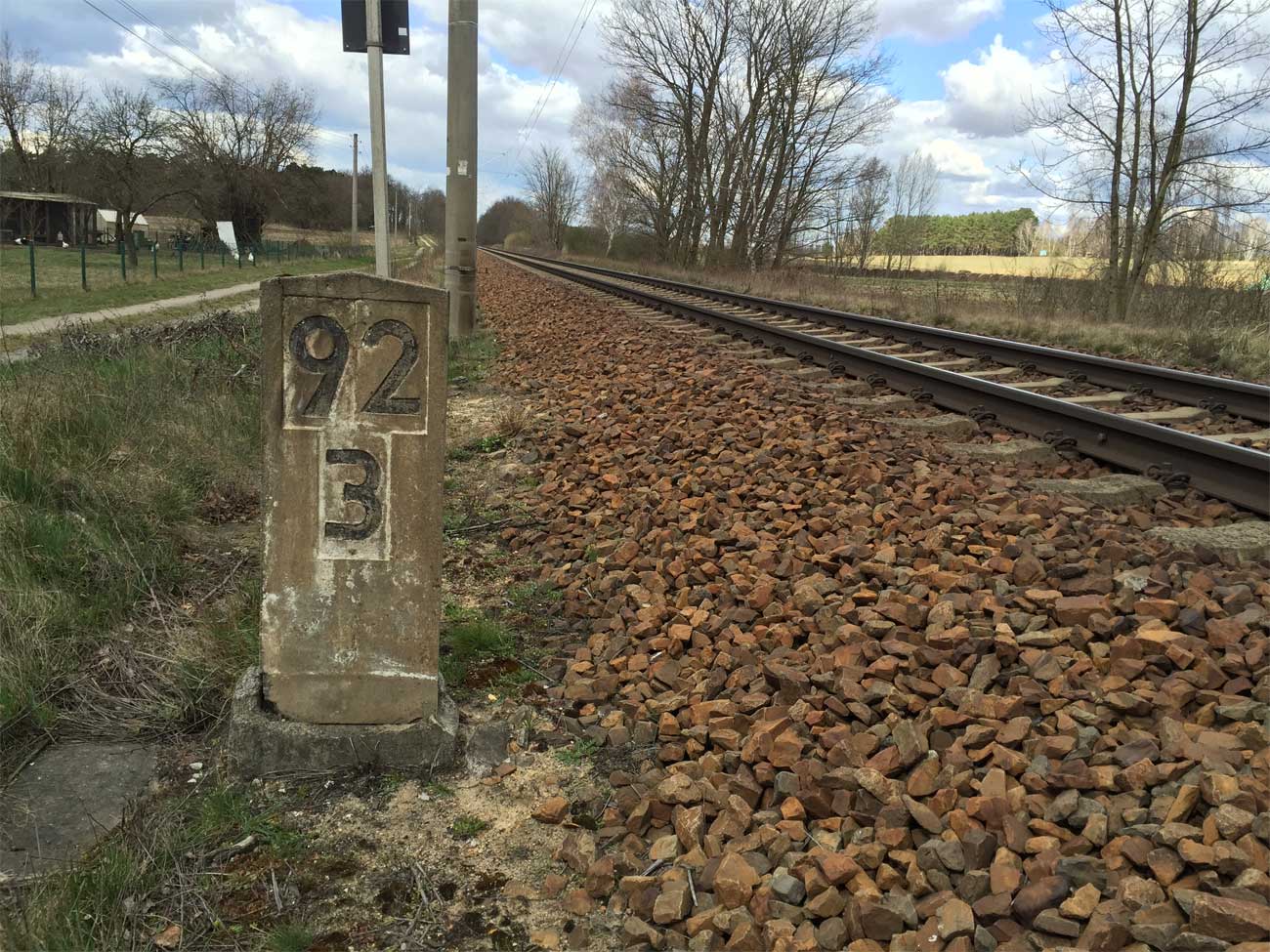 km 79,70 der Strecke Großenhain Cottb. Bf 0,23 - Senftenberg 45,29 - Cottbus 79,70 - Streckenunterbrechung - Grunow (Niederlausitz) 129,27 - Frankfurt (Oder) Pbf 152,85 | ||
