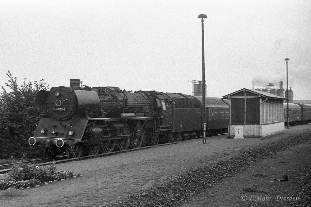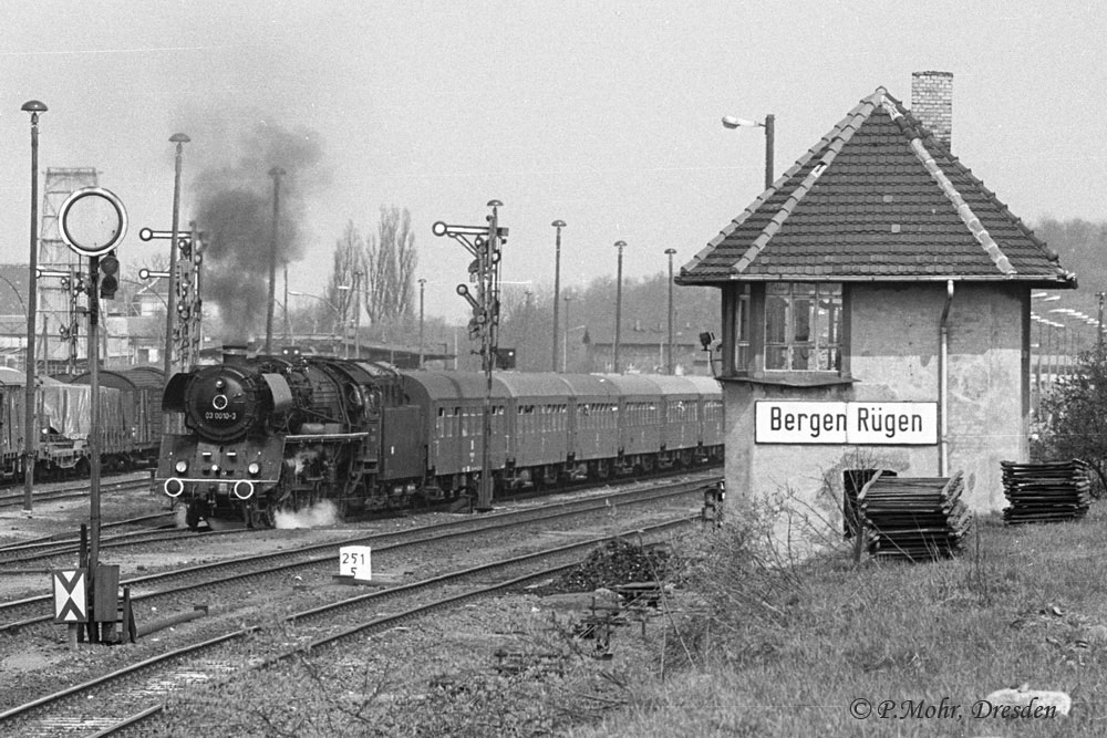 19 | Berlin Eberswalder Straße 0,01 - Berlin-Schönholz 3,85 - Grenze Berlin West/DDR 16,31 - Oranienburg 27,41 - Löwenberg (Mark) 44,25 - Neustrelitz 98,53 -Neubrandenburg 133,73 - Stralsund 222,64 - Saßnitz 272,72 - Saßnitz Hafen 274,46 (1967) |