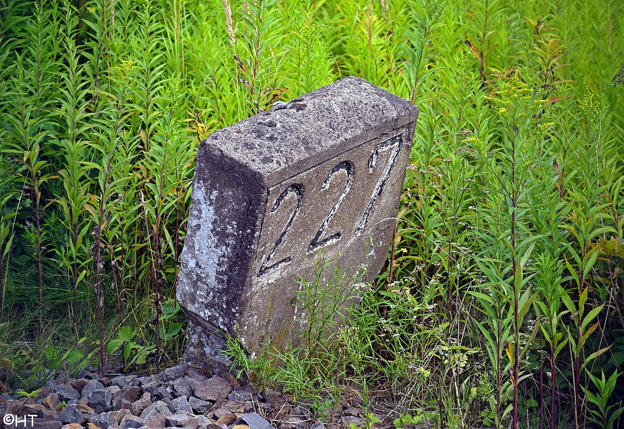 Der Stein zeigt die Kilometrierung von Berlin aus an.