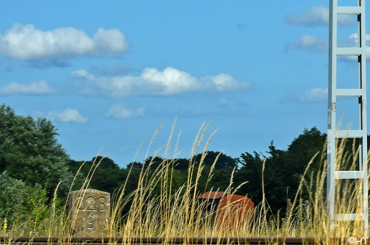 Rechts versteckt ein Stein - gehört zur Strecke nach Saßnitz Hafen