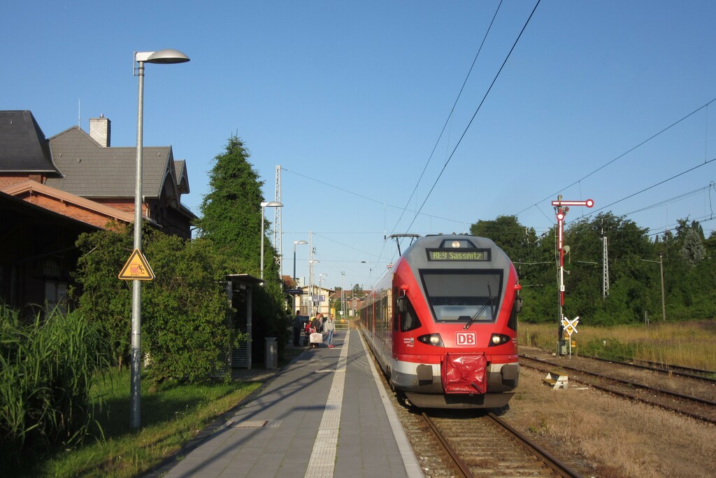 Berlin Nordbf 0,0 - Berlin-Schönholz 3,85 - Löwenberg Reichsb (Mark) 44,25 - Neustrelitz Reichsb 98,53 - Neubrandenburg 133,73 - Stralsund 222,64 - Saßnitz 272,72 - Saßnitz Hafen 274,46 (1937/1943)
