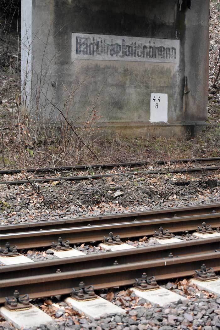 ► | km 75,95 der abgehenden Strecke (Berlin Schlesischer Bf 0,10) - Rosengarten (Kr Lebus) 75,95 - Frankfurt (Oder) Vbf 81,50 mit weiterlaufender Kilometrierung (Streckenverzweigung mit gemeinsamen Nullpunkt Berlin Schlesischer Bf) | |