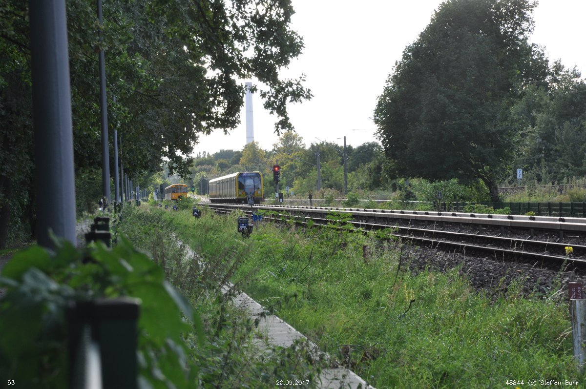 Seit 1989 wird die Trasse von km 7,2 bis Berlin-Kaulsdorf U-Bahn-Linie U5 genutzt. |