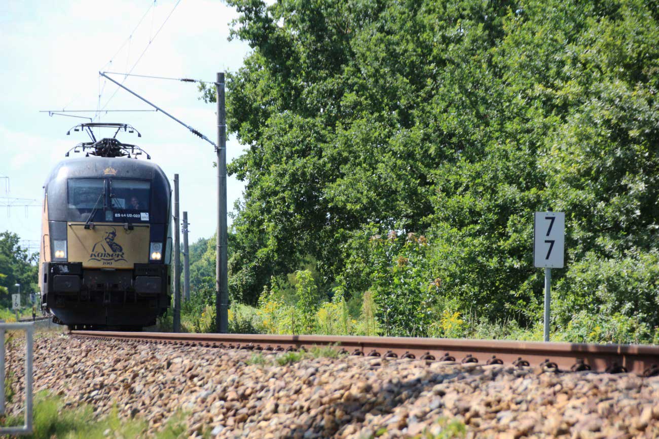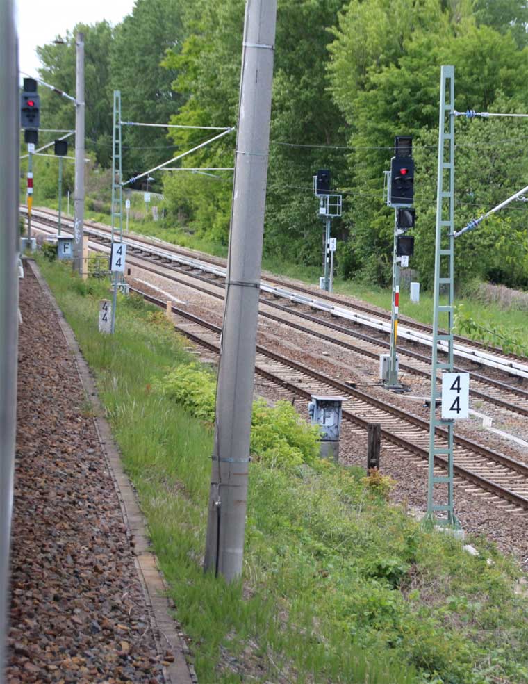 km 4,2 (Tafel am Oberleitungsmast) gehört zum Gegenrichtungsgleis der Strecke