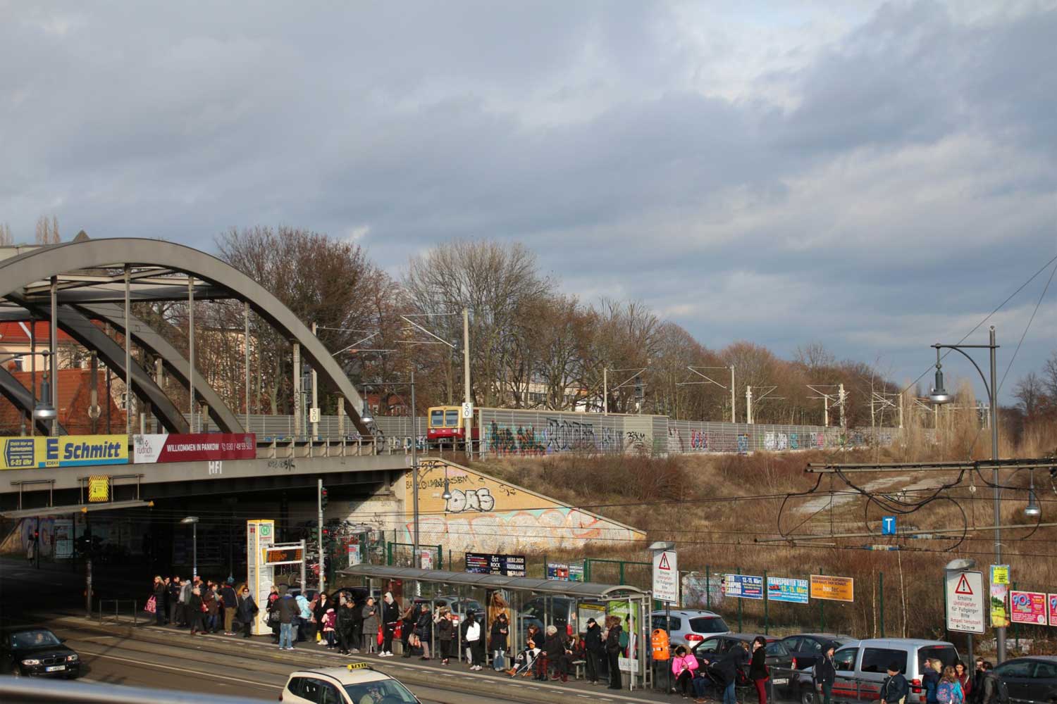 | km 3,52 der ehemaligen Güteranschlussbahn von Pankow Verschiebebf | ||