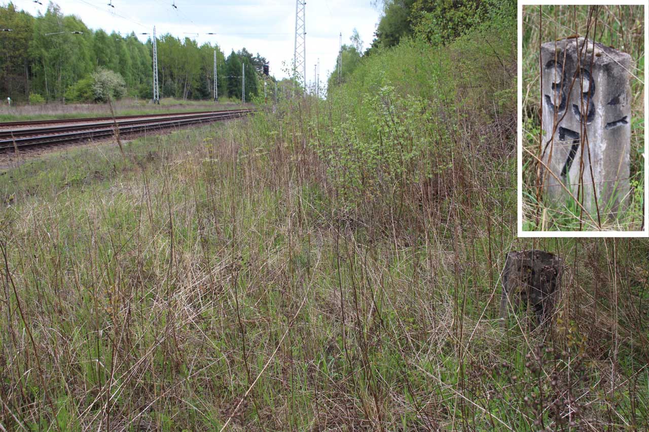 der nach dem Entfernen des Überholungsgleises nun etwas abseits im Gebüsch steht.
