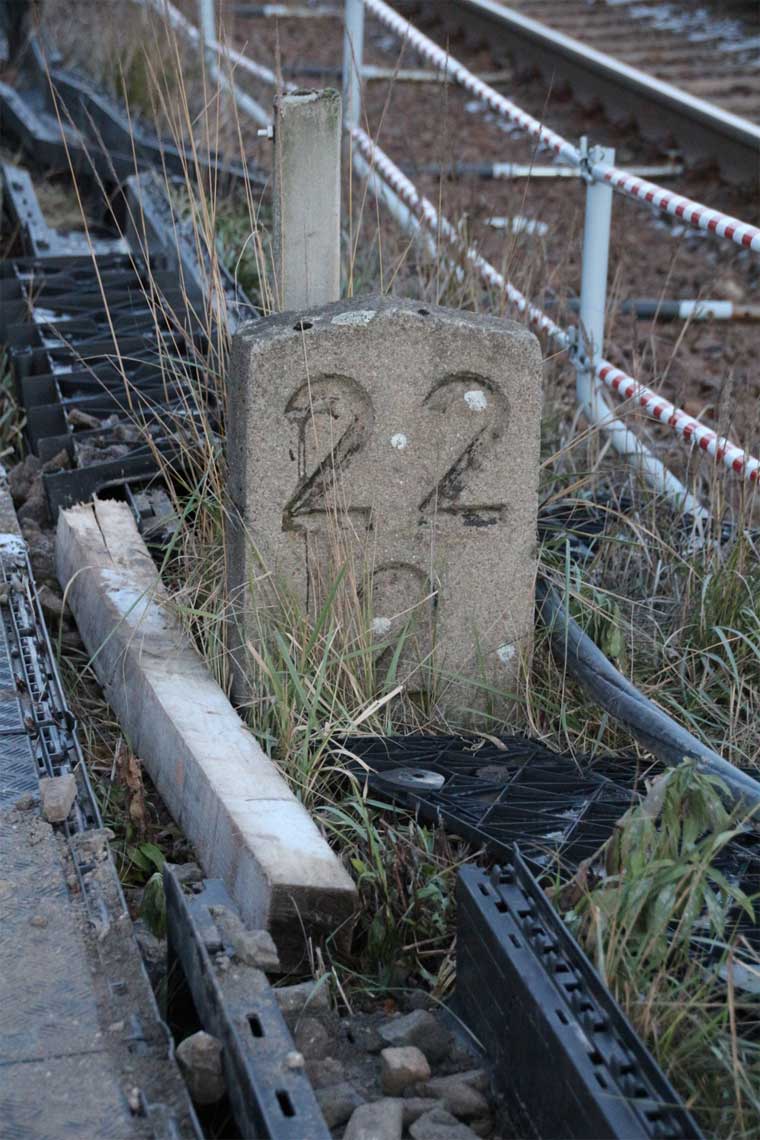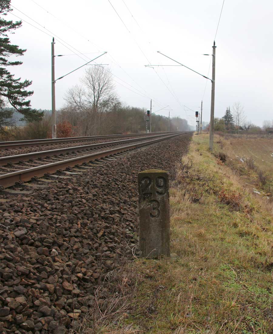 Alte Kilometersteine der Strecke aus Begrnzungssteine