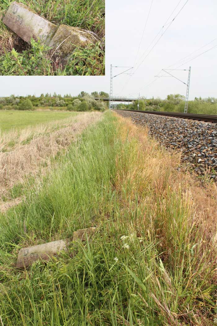 km -1,82 der Verbindungsstrecke zur Nordbahn [Berlin Nordbahnhof (alt) 0,0 - Neustrelitz 98,53 - Neubrandenburg 133,73 - Stralsund 222,64 (kommend)/223,60 (gehend) - Saßnitz 272,72 - Saßnitz Hafen 274,46] | ||