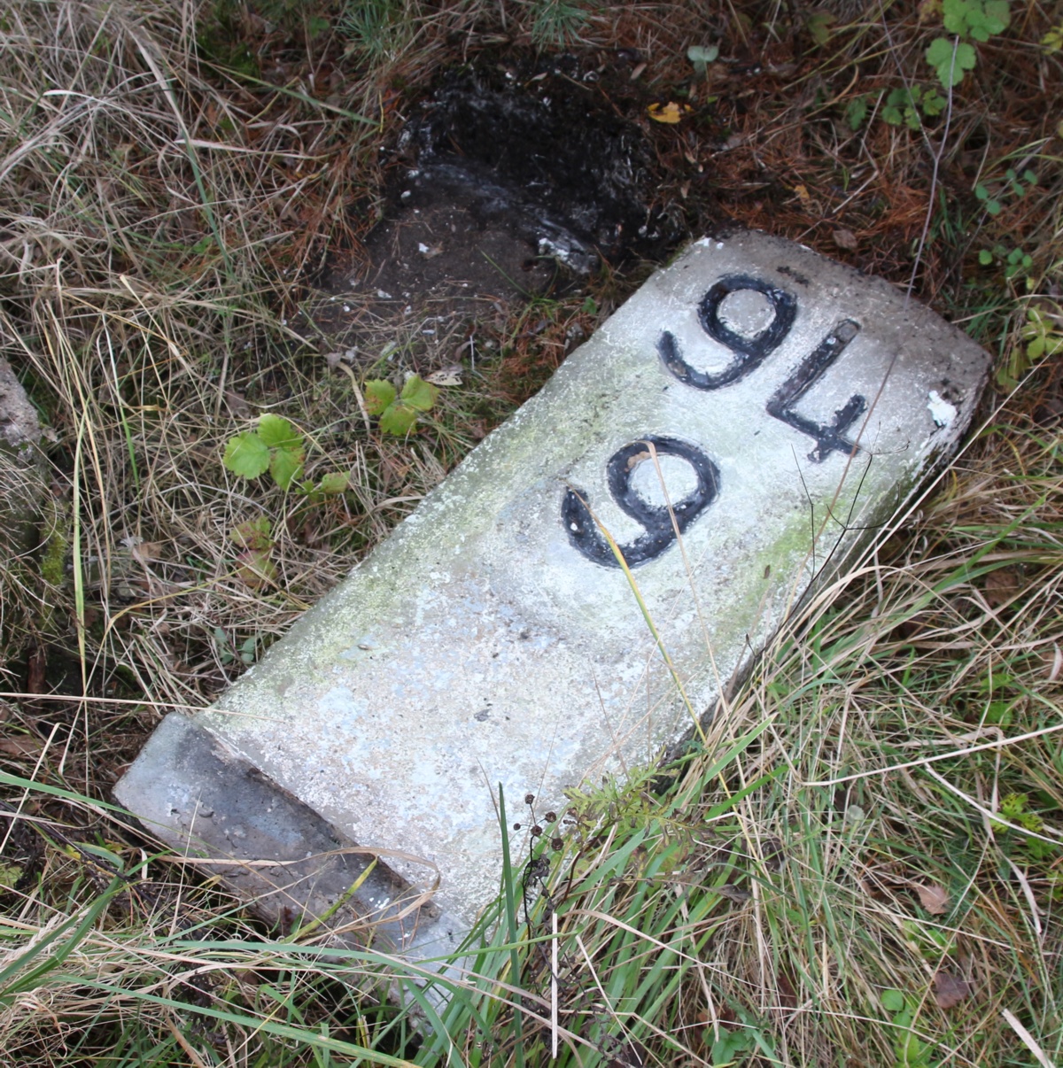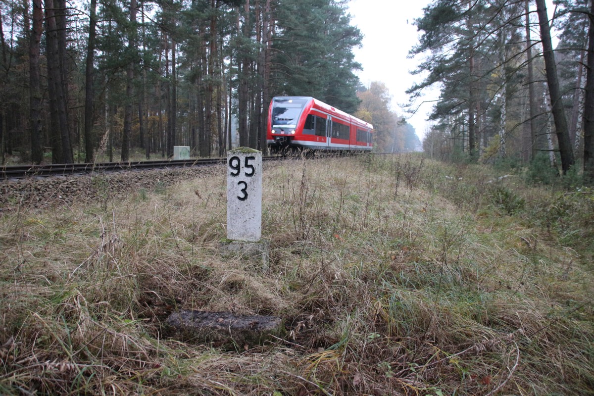 km 95,4 (Stein und Tafel) zwischen Schönow (Uckermark) und Casekow