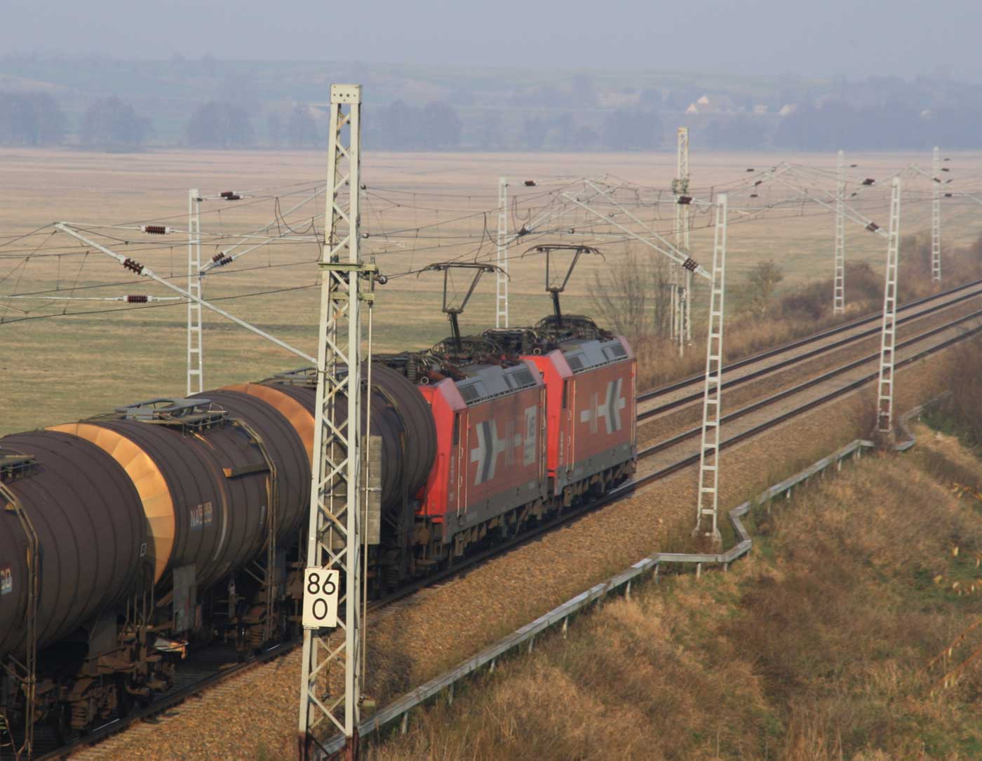 Links km 0,0 der Anschlussbahn zum PCK Schwedt