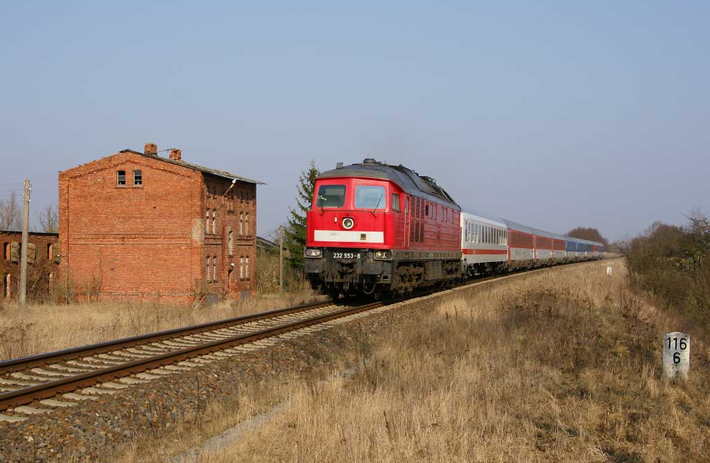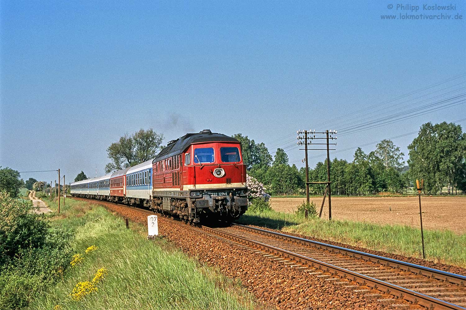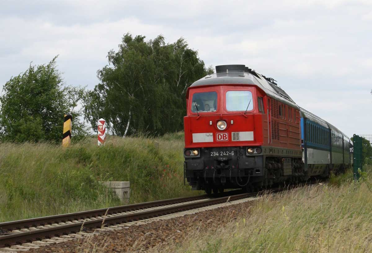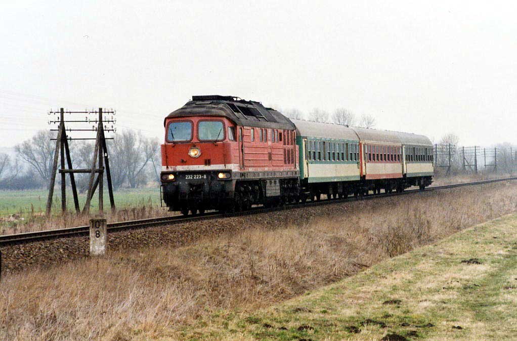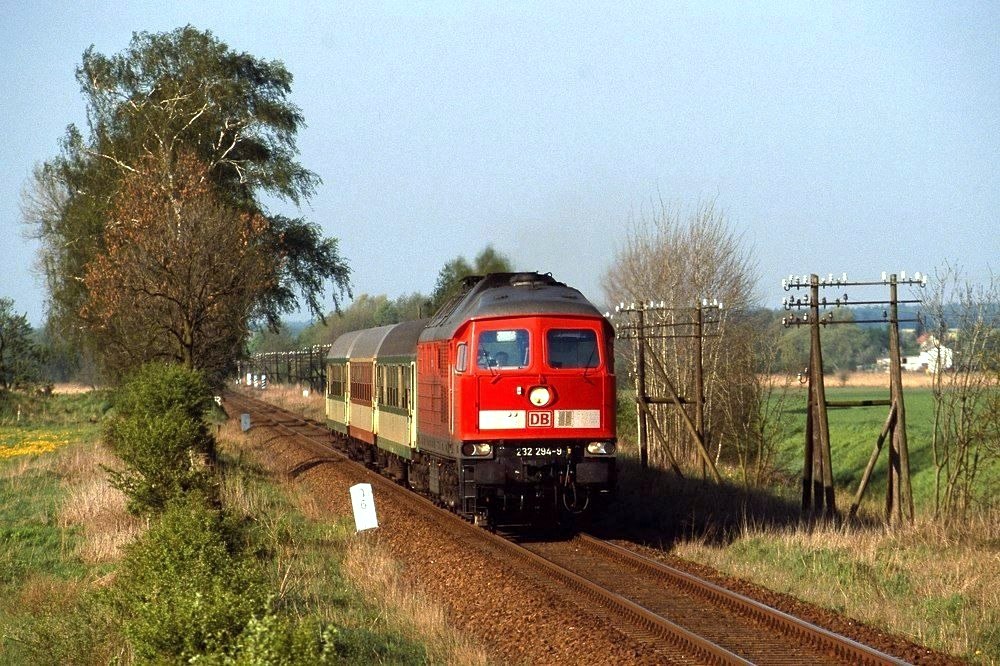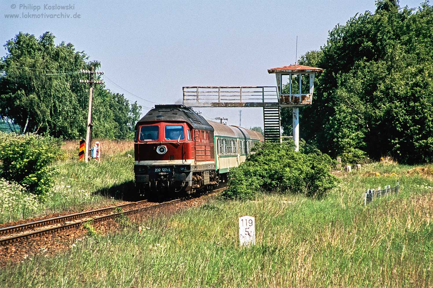 km 114,4 bei Radekow - 232 406 mit RB 5925 auf der Fahrt von Stettin in Ri Angermünde